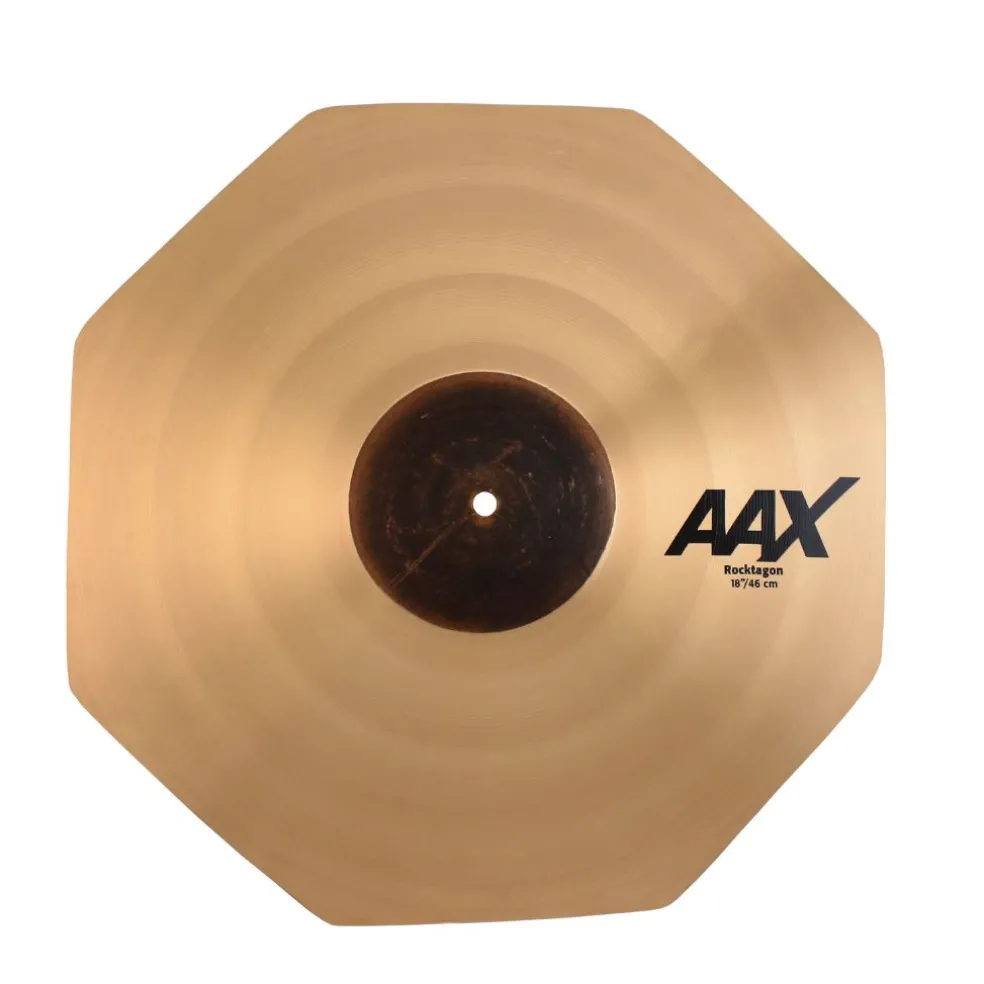 The 18 AAX Rocktagon has the same 8-sided shape as its predecessor from the 80’s, but that’s where the similarity ends. This version is a thin crash weight with a raw un-hammered bell and pinpoint lathing that combine with the 8-sided shape to produce an immediate nasty crash with quick decay. The thicker raw bell also allows for strong bell accents and added punch. An excellent effects cymbal with an unusual look and sound.