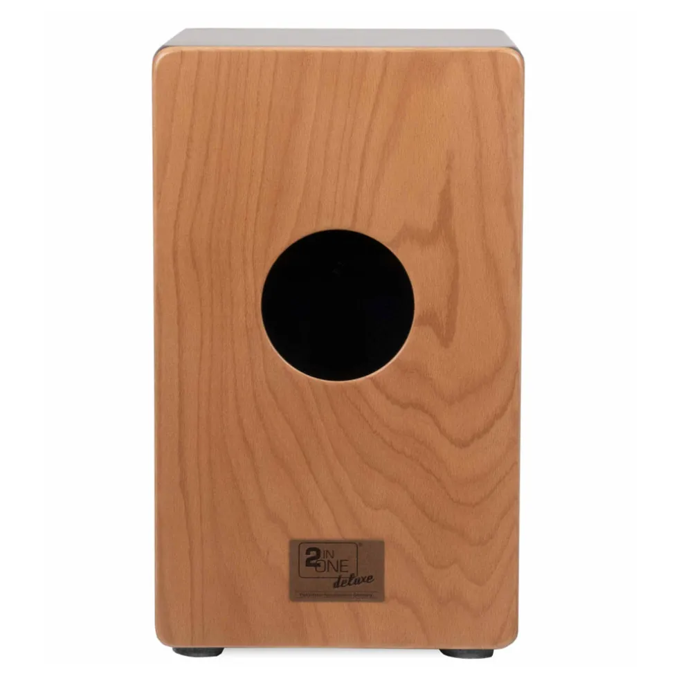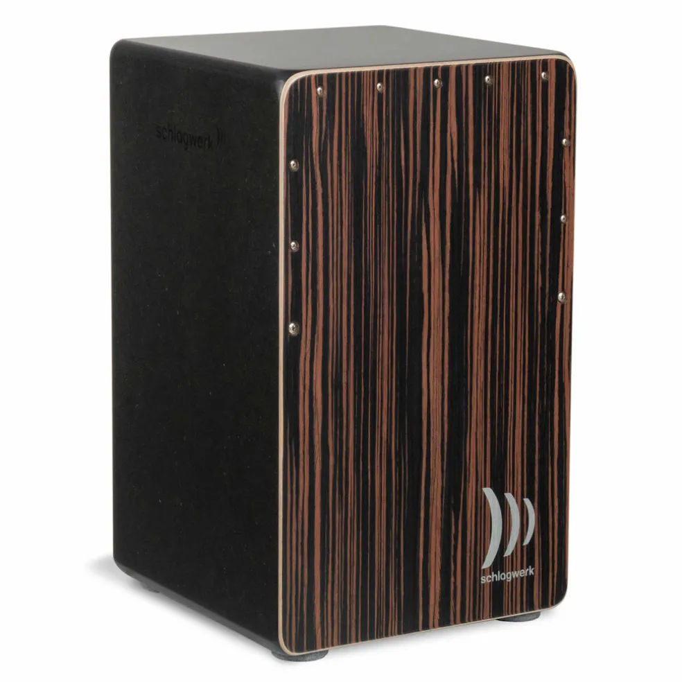 Cult guarantee: this black beauty has it all. The lovely Macassar surface produces a surprisingly strong bass, and its special resonance box made of SPL (Sonic Projection Lignum) represents a new dimension in Cajon construction. But that‘s not all: the extremely rich snare sound produced by 84 spirals definitively ensures its poleposition within the 2inOne-Series. “Deluxe” – for eyes and ears!