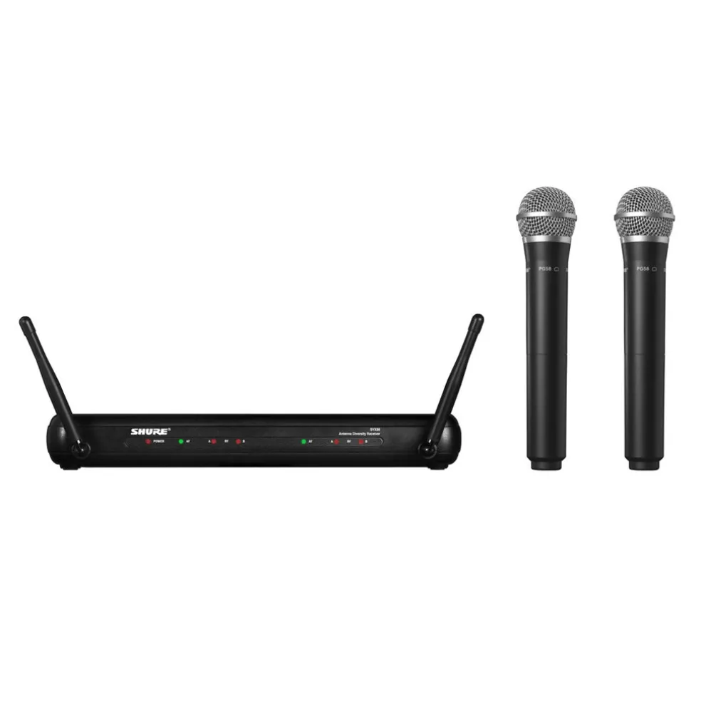 SVX Wireless Systems are the low cost option of Shure wireless systems, engineered to maintain uncompromising Shure audio quality and performance. Includes SVX88 Dual Diversity Receiver, Two SVX2 Handheld Transmitters with PG58 Mic Head.