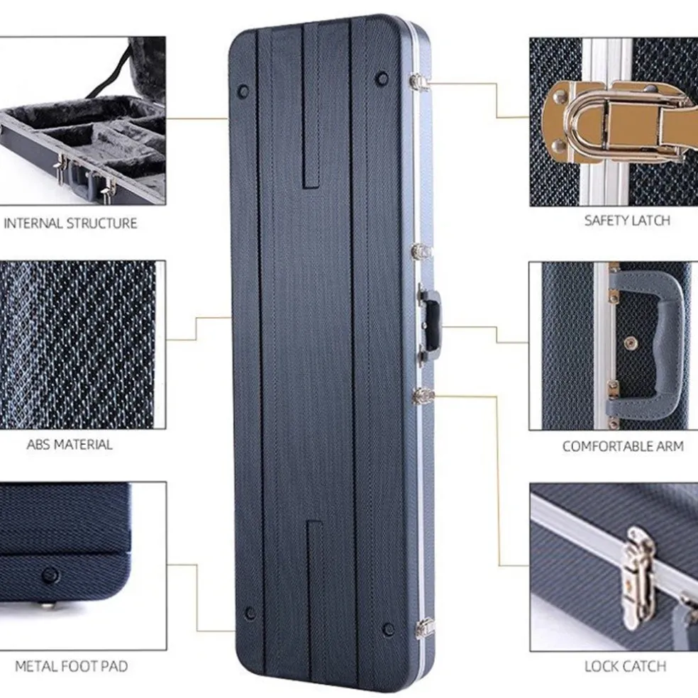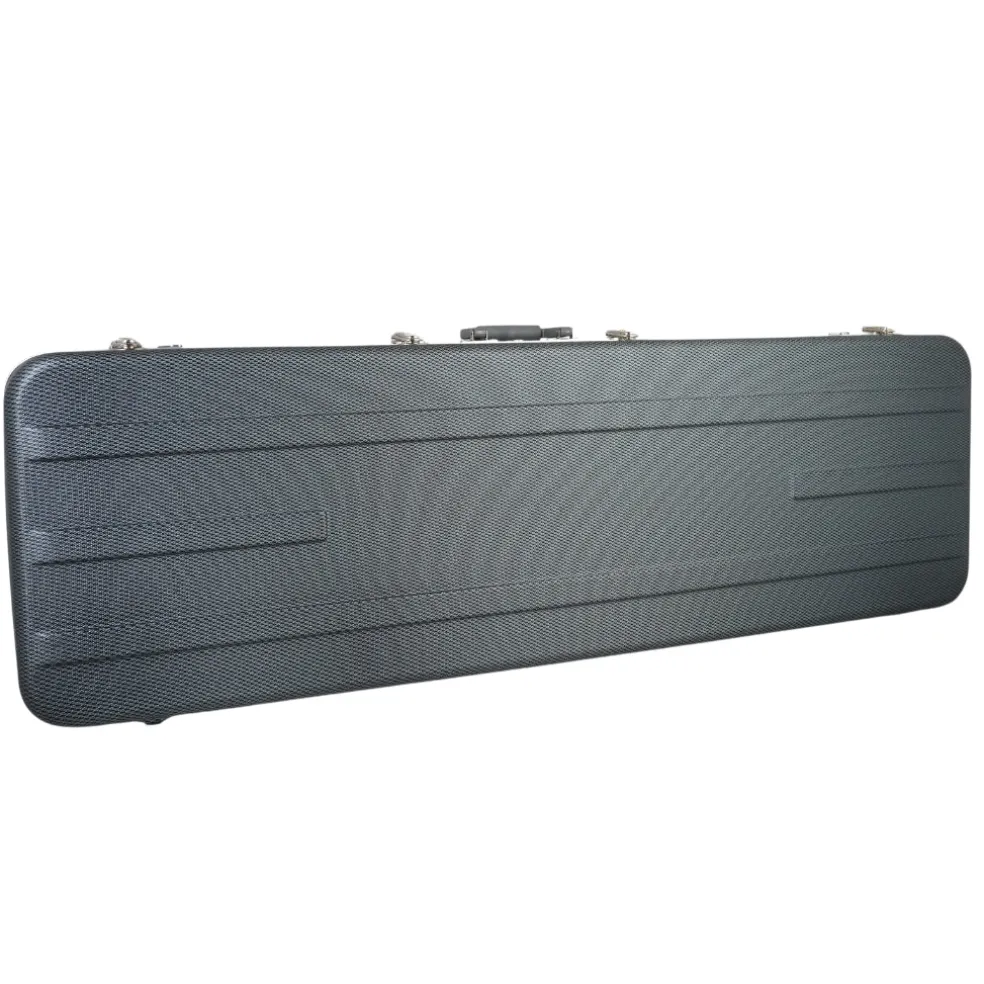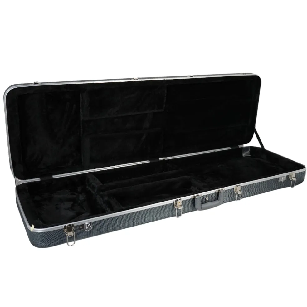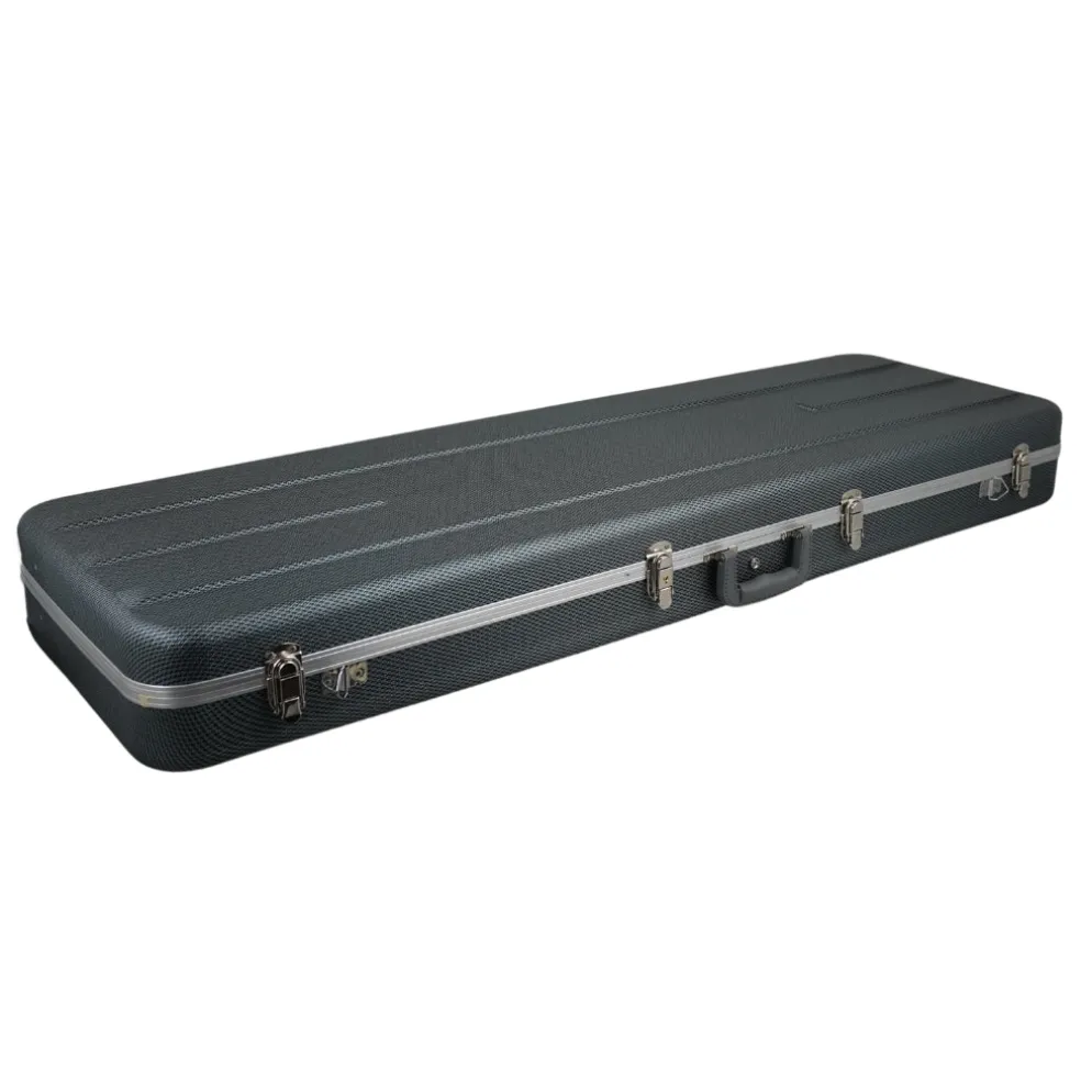An ABS hardcase for electric bass in a grey finish with black interior.