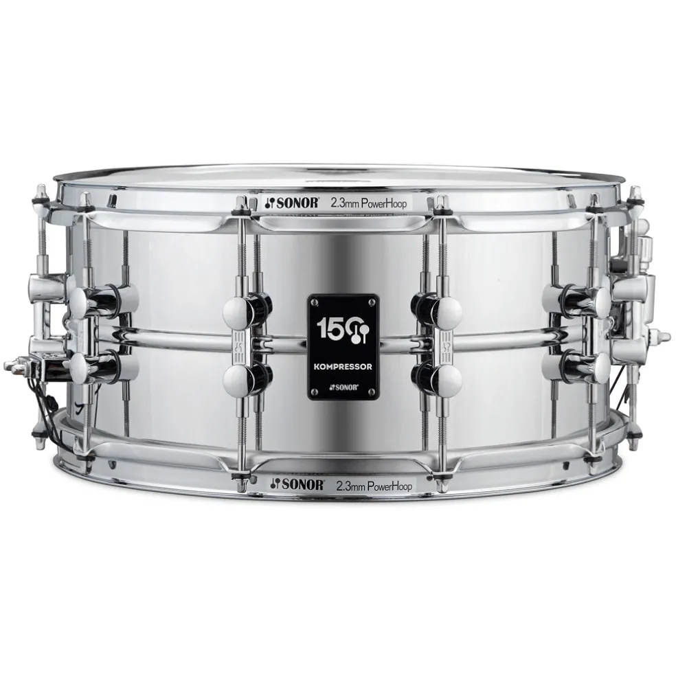 The SONOR 150th Anniversary Edition Kompressor steel snare drum delivers immense sonic energy and sensitivity. You’ll be blown away by the powerful, characteristic SONOR sound from the first strike of this 14×6.5″ steel snare. Its wide dynamic range and responsive feel make it a versatile workhorse that shines across musical genres. Whether laying down tight grooves or thunderous backbeats, this limited-edition snare lets your playing cut through the mix with articulate presence. Celebrate SONOR’s 150-year legacy of innovation with a drum that captures the essence of their renowned tone in a sleek, durable steel shell.