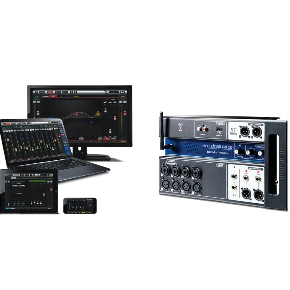 The Ui Series mixers feature cross-platform compatibility with iOS, Android, Windows, Mac OS, and Linux devices, and can use up to 10 control devices simultaneously. In addition, the Ui12 and Ui16 each feature built-in HARMAN signal processing from dbx, DigiTech and Lexicon, including dbx AFS2, DigiTech Amp Modeling, and more. Both models feature fully recallable and remote-controlled mic gain and phantom power, along with 4-band parametric EQ, high-pass filter, compressor, de-esser and noise gate on input channels.