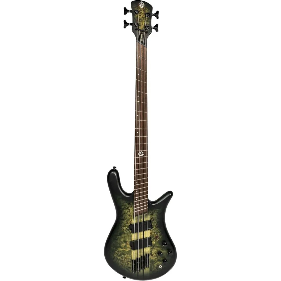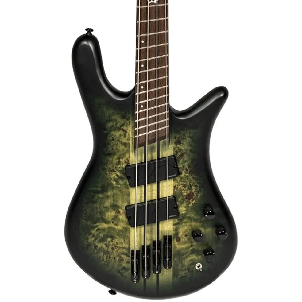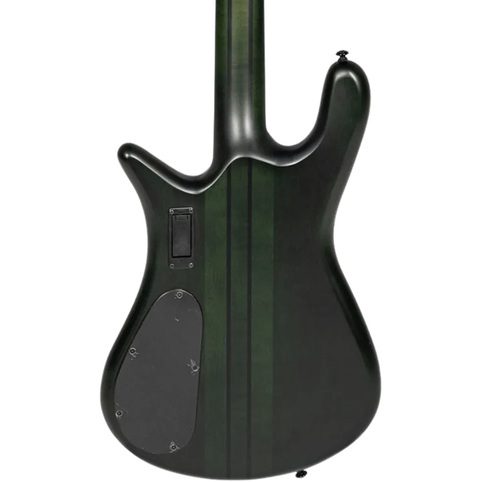 Spector’s NS Dimension Series combines iconic design with multi-scale construction, bringing a new level of playability and tonality to Spector’s dedicated legion of players. In addition to the multi-scale, neck-thru construction, the NS Dimension features a variety of premium tonewoods and cutting-edge Fishman Fluence electronics. The fully curved body is carved from lightweight Swamp Ash and features a highly figured Poplar Burl top. The 5-piece neck is constructed from Maple and Wenge for enhanced stability and eye-catching looks. The 24 fret Wenge fingerboard also features illuminating side dots, allowing players to expertly navigate the fingerboard. NS Dimension basses are available in two distinct finishes, Haunted Moss Matte and Super Faded Black Gloss.