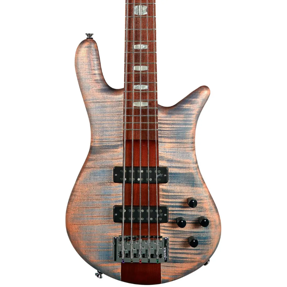 The Euro RST series brings Spector’s classic design into a new era with updated tonewoods, enhanced electronics, and a fresh palette of exclusive stain options. Neck-through construction has long been central to the Spector design. The Euro RST takes this concept to the next level with a three-piece Roasted Maple neck & fingerboard, which not only gives this design a distinct look, but offers enhanced stability and rigidity. This perfectly tempered tonewood is paired with a uniquely figured Flame Maple top and Empresswood back, for striking looks, resonance, and lightweight performance. For electronics, Euro RST models are loaded with Aguilar Super Double pickups and OBP-2 pre-amps for an added mid-range focus that’s sure to cut through any mix. These exciting basses are available in three all-new colors, Sienna Stain, Turquoise Tide, and Sundown Glow, each complemented with a matching headstock, and a soft matte finish that feels broken-in from day one.