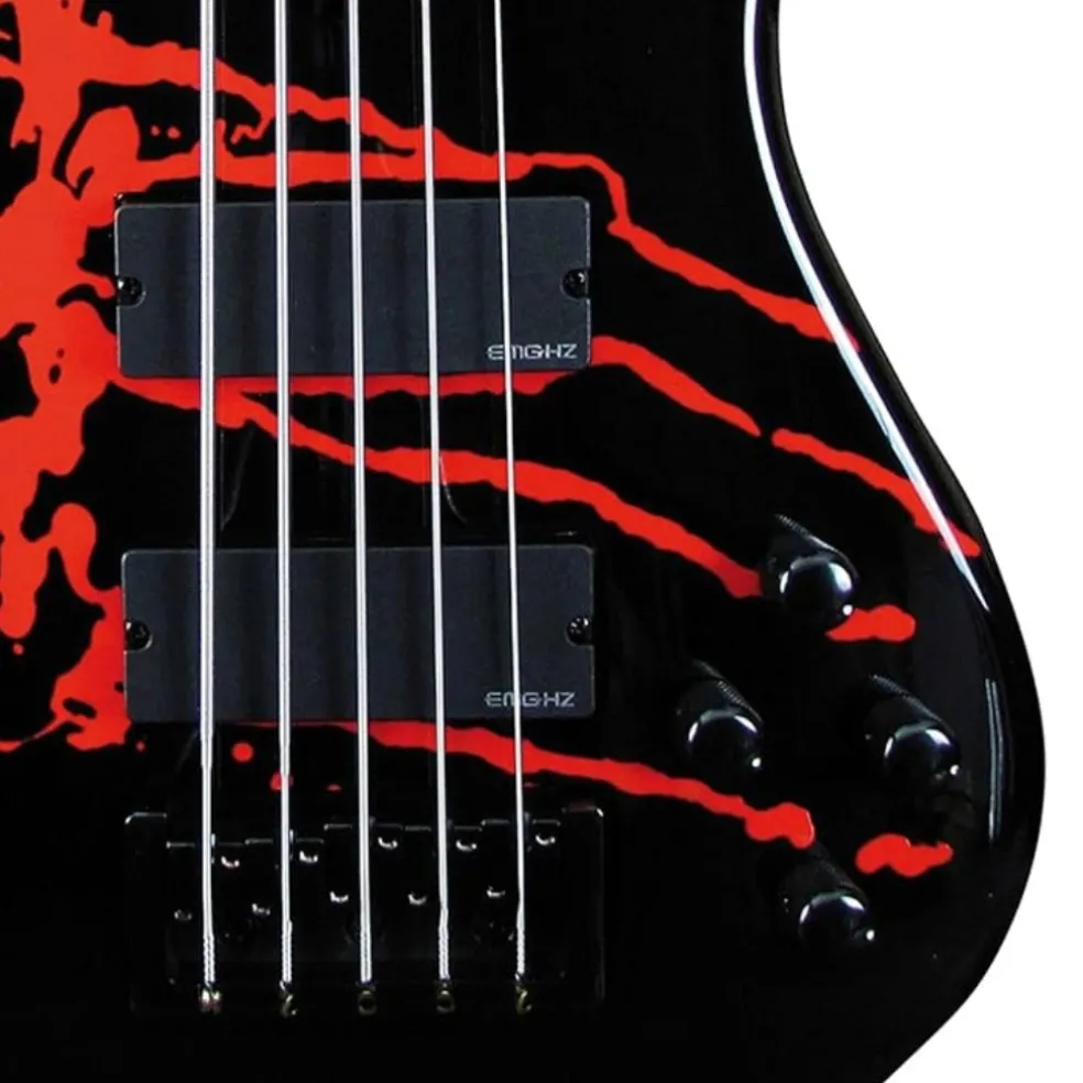 The Legend 5 Classic Alex Webster is a brutal take on the the coveted Spector NS body, complete with Alex’s signature Blood Drip finish. The extremely comfortable curved body is crafted from solid maple for a bright and responsive tone. The 3-piece bolt-on maple neck runs features a 24 fret pau ferro fingerboard. A pair of EMG humbuckers are complemented by EMG’s active BTS System for a powerful and aggressive sound, perfect for cutting through a dense mix. Alex’s Legend bass is also outfitted with professional quality die-cast hardware to provide rock-solid intonation show after show. If you’re looking to make a statement with your playing, might as well start with your bass.