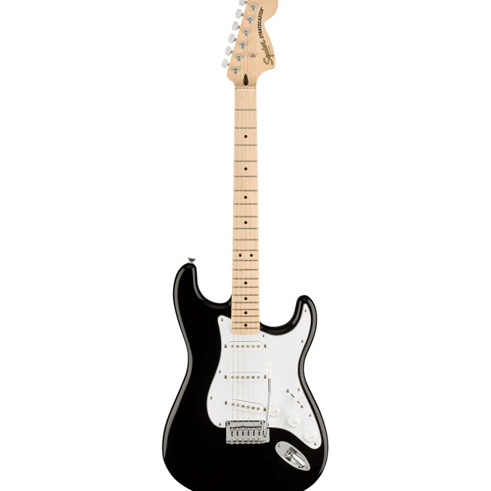 A superb gateway into the time-honored Fender® family, the Squier® Affinity Series™ Stratocaster® delivers legendary design and quintessential tone for today’s aspiring guitar hero. This Strat® features several player-friendly refinements such as a thin and lightweight body, a slim and comfortable “C”-shaped neck profile, a 2-point tremolo bridge for superior tremolo action and sealed die-cast tuning machines with split shafts for smooth, accurate tuning and easy restringing. Loaded with a trio of Squier single-coil Strat pickups with 5-way switching for genre-defying sonic variety, this model is ready to accompany any player at any stage.