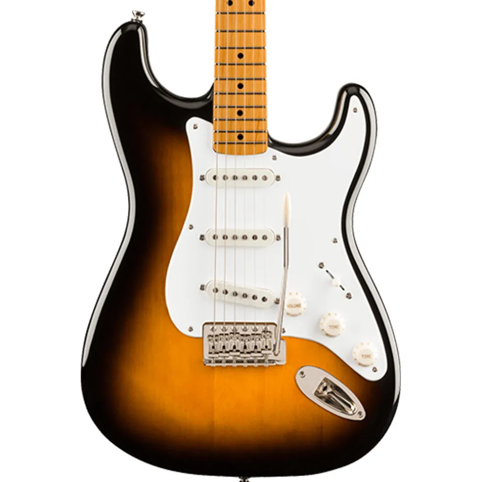 A celebration of the birth of the Strat® in the 1950s, the Classic Vibe ‘50s Stratocaster creates incredible tone courtesy of a trio of Fender-Designed alnico single-coil pickups. Player-friendly features include a slim, comfortable “C”-shaped neck profile with an easy-playing 9.5”-radius fingerboard and narrow-tall frets, as well as a vintage-style tremolo system for expressive string bending effects. This throwback Squier model also features 1950s-inspired headstock markings, rich-looking nickel-plated hardware and a slick vintage-tint gloss neck finish for an old-school vibe.