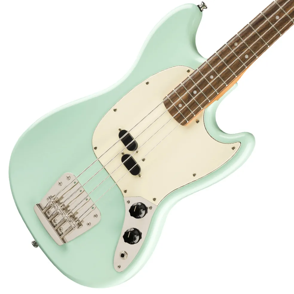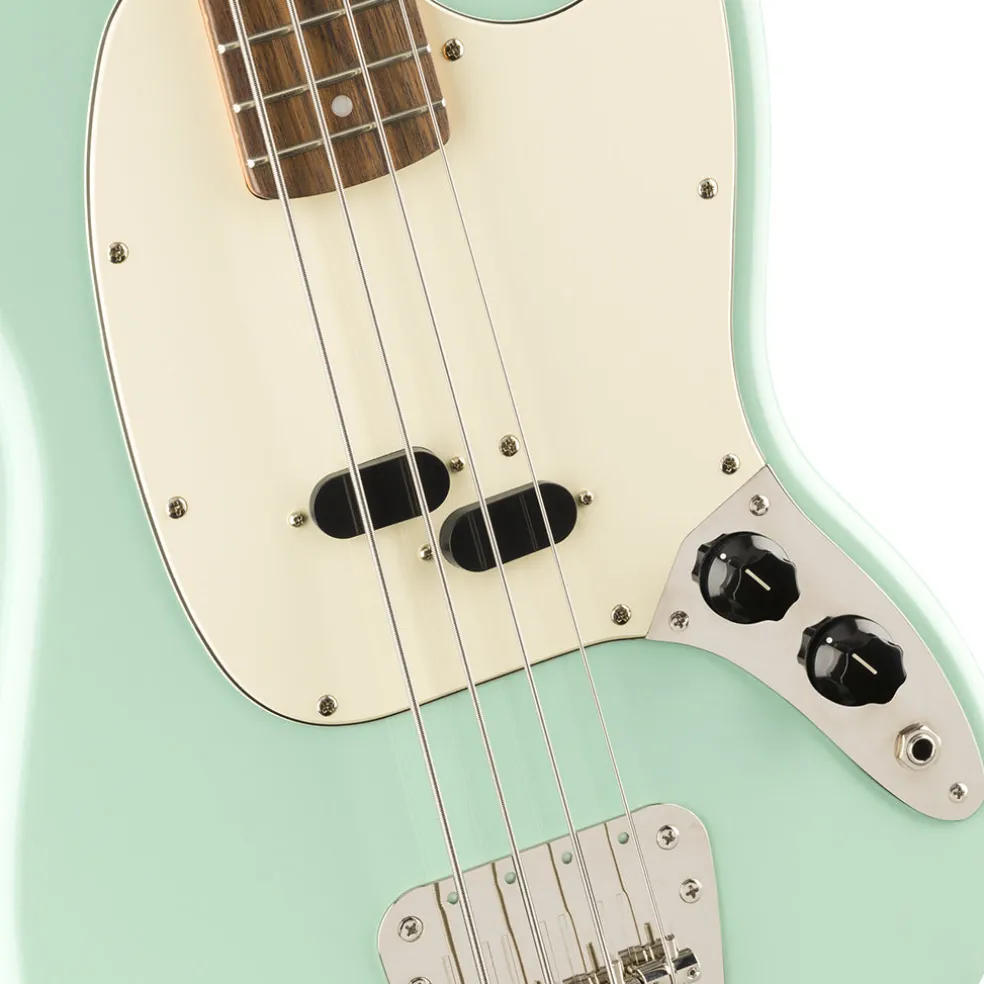 While small in stature, the Classic Vibe ‘60s Mustang® Bass packs a punch of incredible tone courtesy of the Fender-Designed alnico split-coil pickup. Small hands will appreciate the short 30” scale length and slim, comfortable “C”-shaped neck profile with an easy-playing 9.5”-radius fingerboard and narrow-tall frets. This throwback Squier model also features 1960s-inspired headstock markings, rich-looking nickel-plated hardware and a slick vintage-tint gloss neck finish for an old-school vibe.