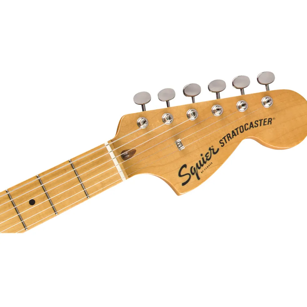 This throwback Squier model also features 1970s-inspired headstock markings, rich-looking nickel-plated hardware and a slick vintage-tint gloss neck finish for an old-school vibe.
