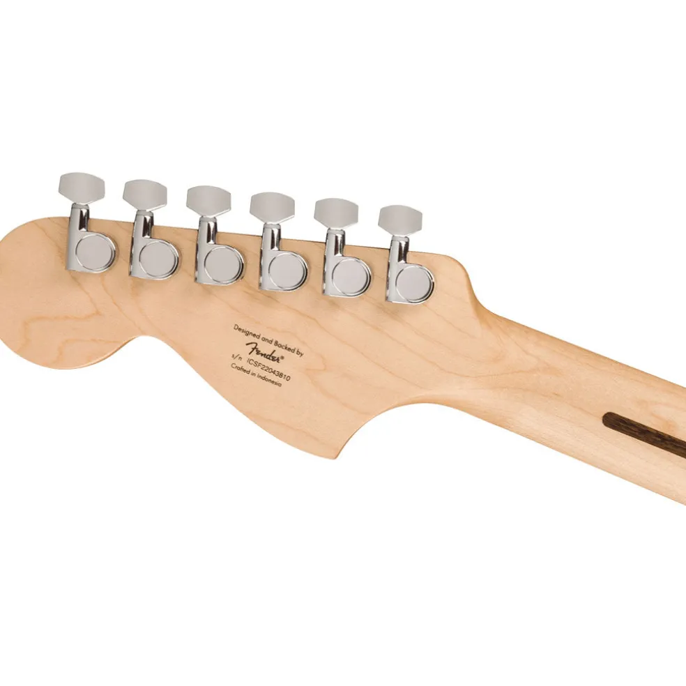 The Squier Sonic® Mustang® is ready to launch any musical adventure into warp speed, offering iconic Fender® style and inspiring tone for players at any stage. This Mustang sports a slim and inviting C-shaped neck profile and a thin, lightweight body for optimal playing comfort while a pair of Squier® single-coil pickups chime with crystal clarity for a wide variety of versatile tones. Further details of this model include a short 24 scale length, 6-saddle hardtail bridge for reliable intonation, sealed-gear tuning machines for smooth, accurate tuning and durable chrome-plated hardware that is sure to catch the spotlight.
