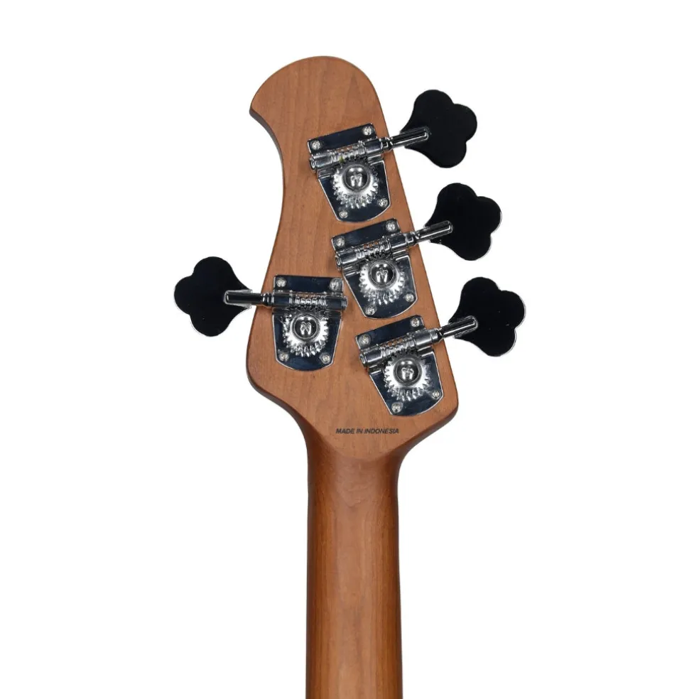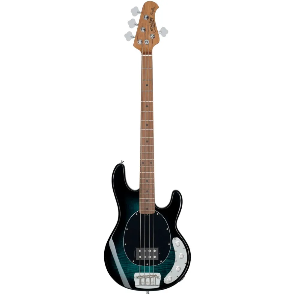 The Sterling by Music Man StingRay Ray34 electric bass guitar delivers rich, solid sound and eye-catching style, crafted with a solid nyatoh body and stunning flame maple top. Featuring a roasted maple neck, modern contoured body, 3-band active preamp and SBMM alnico humbucker, it’s built for iconic bass sound with a classic look and contemporary feel. Additional appointments to the StingRay Ray34 include a rosewood (Heritage Cherry Burst) or roasted maple (Neptune Blue and Teal) fingerboard with 21 medium frets, an SBMM design bridge, open-gear tuners and chrome hardware.