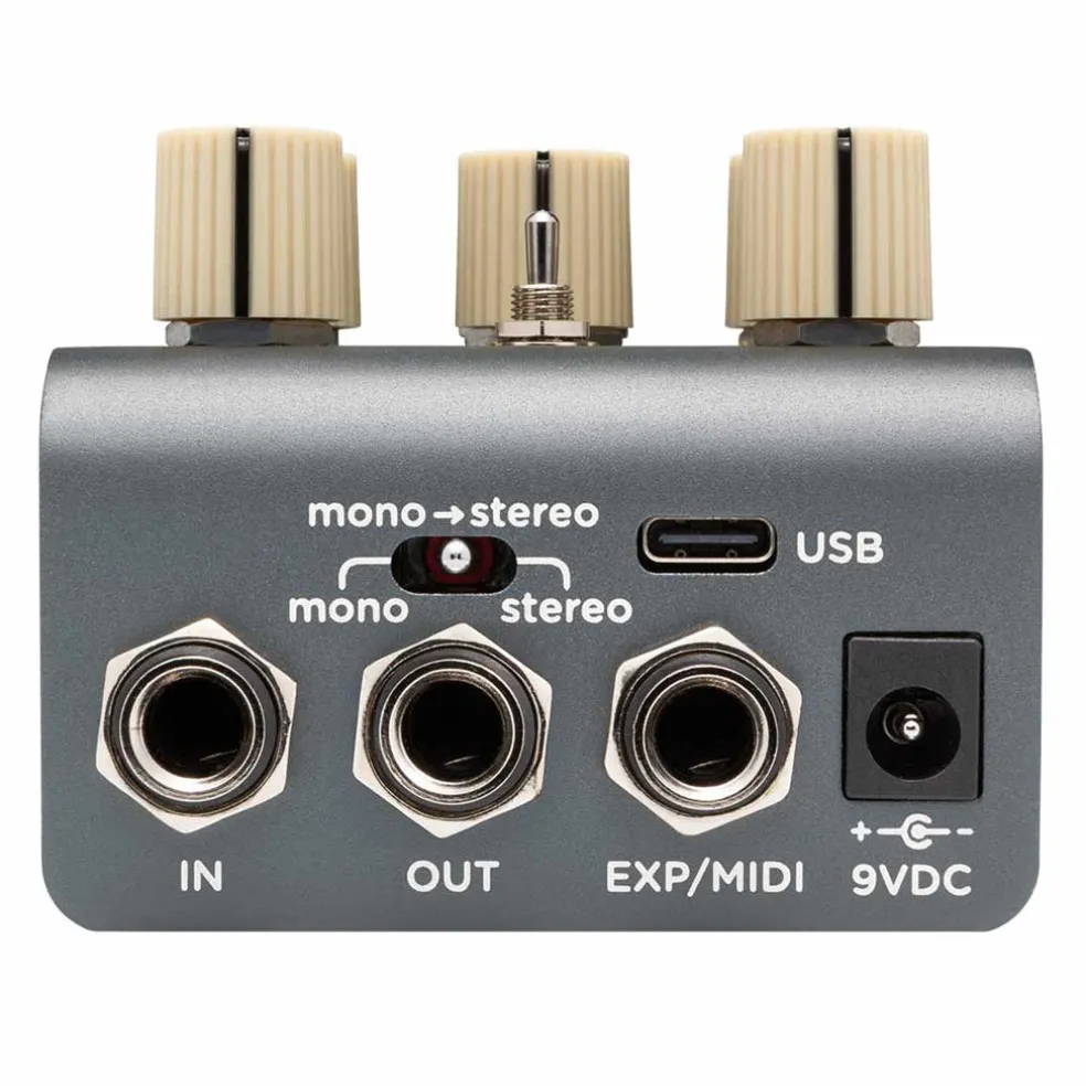 EC-1 offers impressive power and flexibility in a small and elegant form factor. Selectable tube-modeled preamp voices. Artifact-free tap tempo. Discrete stereo operation for independent processing of the left and right stereo inputs. Straightforward controls and expression pedal capability. High-impedance, ultra-low noise discrete Class A JFET stereo input preamp for exceptional touch sensitivity, dynamics and feel. MIDI control of tempo, patch save/recall and more. Premium components, rugged construction and a USB jack for performing firmware updates or controlling the pedal from a computer.