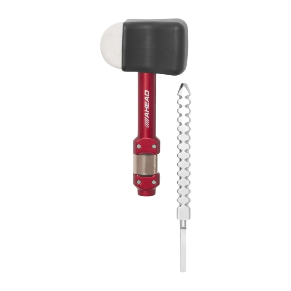 - Two-way, reversible beater head on a red aircraft grade aluminum shaft