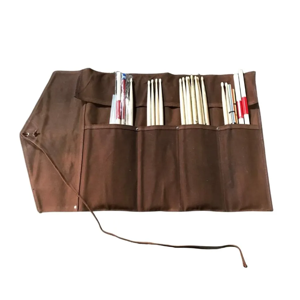 Tackle Instrument Supply’s Roll Up Stick Bag is a tough case that will safely transport your precious sticks to and from gigs. This bag is made of waxed cotton canvas and can withstand the demands of travel. The external leather laces can be used to secure the bag to the drums during a show.