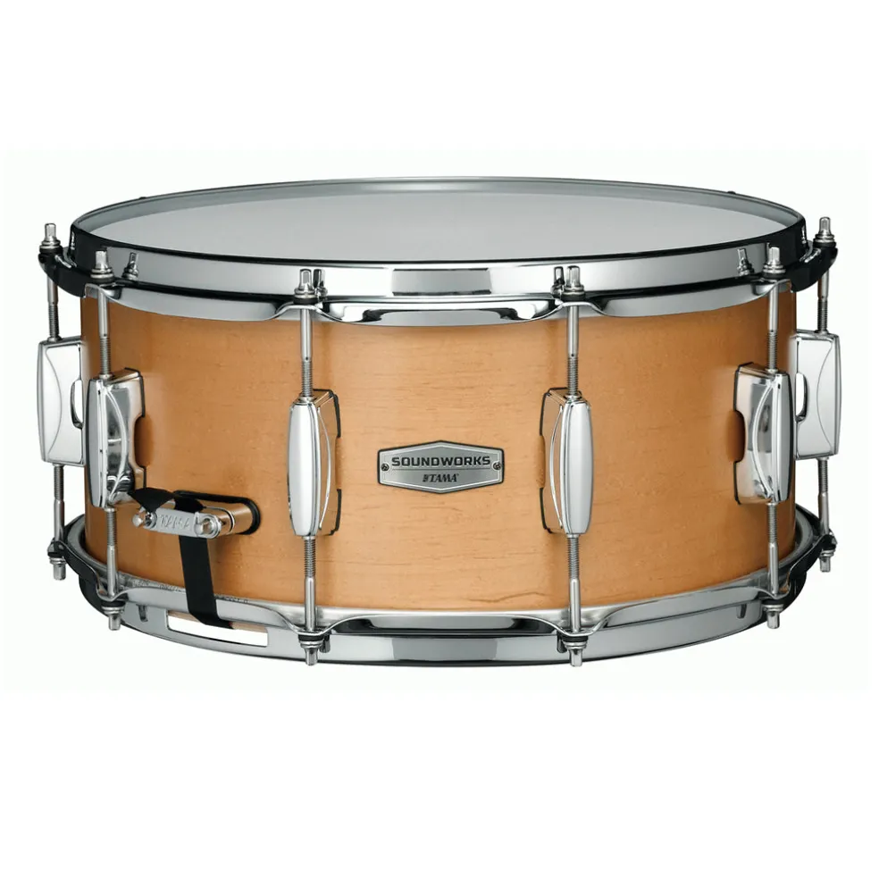 TAMA has a wide variety of snare drum options to complement our array of drum kits. From our super high end STAR snare drums to the Soundworks series, which offers quality at a great price, there is a model to fit every drummer’s desired sound and budget.. Part of the Tama Soundworks Series – 5mm 6ply Maple Shell Construction with Sound Arc Hoop (6 hole – 1.6mm), sized 5.5″ x 12″.
