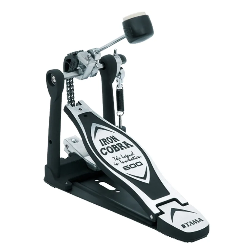 The limited Iron Cobra 600 in stunning jet black finish with red accents is outfitted with the Iron Cobra 900 Power-Strike Cobra Beater, completing this pedal’s very special combination of looks, sound, and function. The Iron Cobra 600’s most unique feature is a reversible cam called the “Duo Glide Cam.” A simple adjustment allows fast changes between a true curved radius “Rolling Glide” sprocket and an offset “Power Glide” sprocket. Drummers can choose the appropriate cam based individual personal preference. In addition, the Iron Cobra 600 features a newly designed hinge for precise footboard action, and ball bearing equipped “Speedo-Ring” rocker cam.