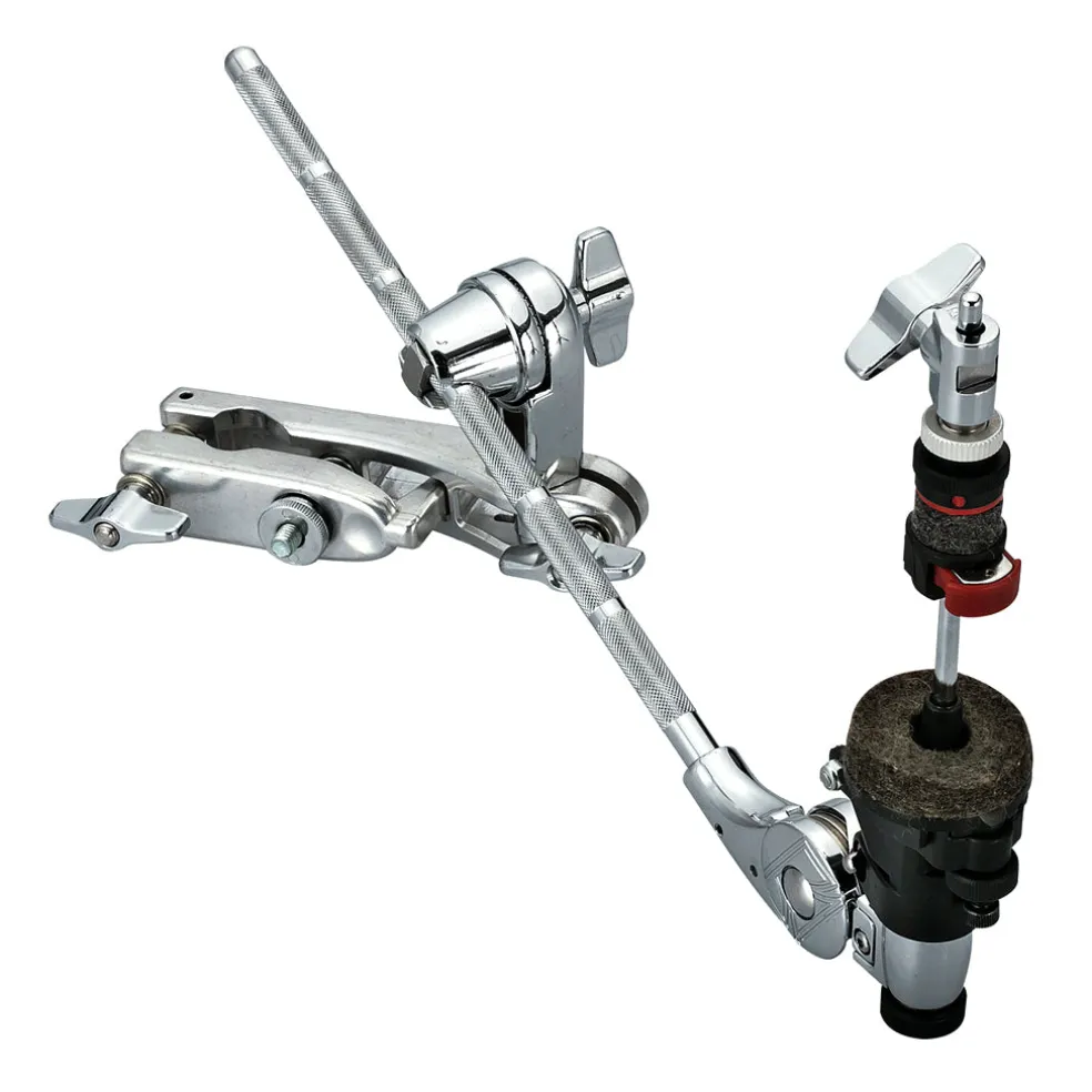 This closed hi-hat attachment is ideal for double bass playing. The tension adjustment knob makes it possible to finely adjust the degree of opening of the hi-hat cymbals. In addition, the angle of the bottom cymbal is also adjustable, which allows for subtle adjustment of the sound of a closed or half-open hi-hat by changing how air escapes with each hit.