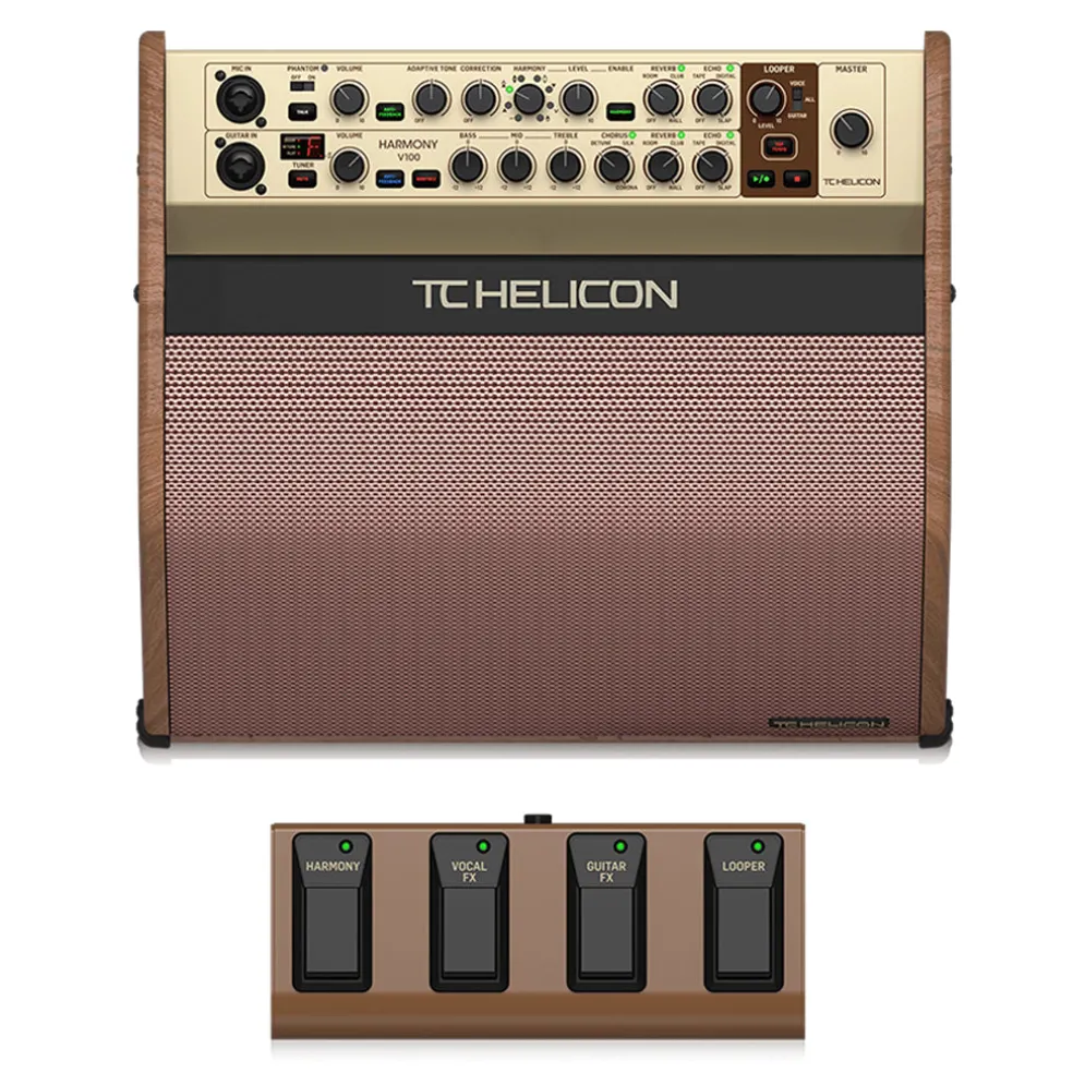The Harmony V100 Acoustic Amplifier is crammed full of features and innovations that can help you weave intricate, evolving sounds at home or in clubs and halls. Maximize your audio potential to capture attention and hold it with an array of fascinating vocal and guitar effects and looping in an easy-to-carry processor and amplifier system.