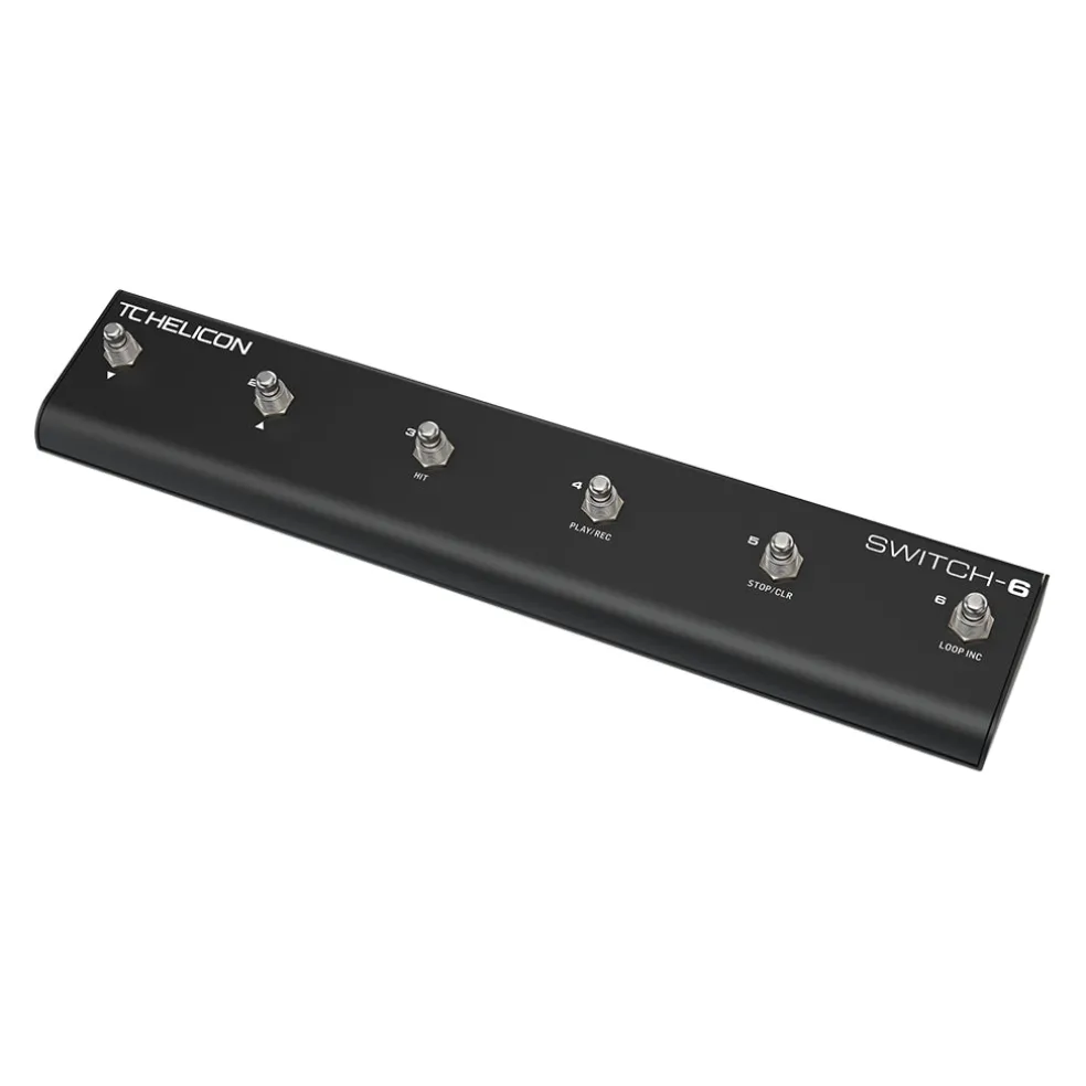 Sturdy 6-switch accessory foot pedal for TC HELICON vocal/guitar processors gives you expanded remote control of FX