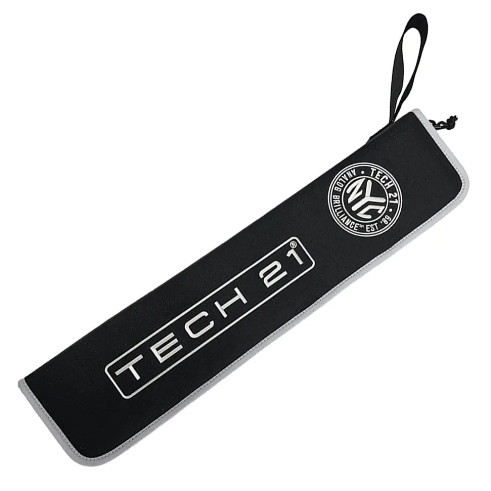 A padded nylon gig bag for Tech 21 Fly Rigs with silver embroidered logos at the front & back.