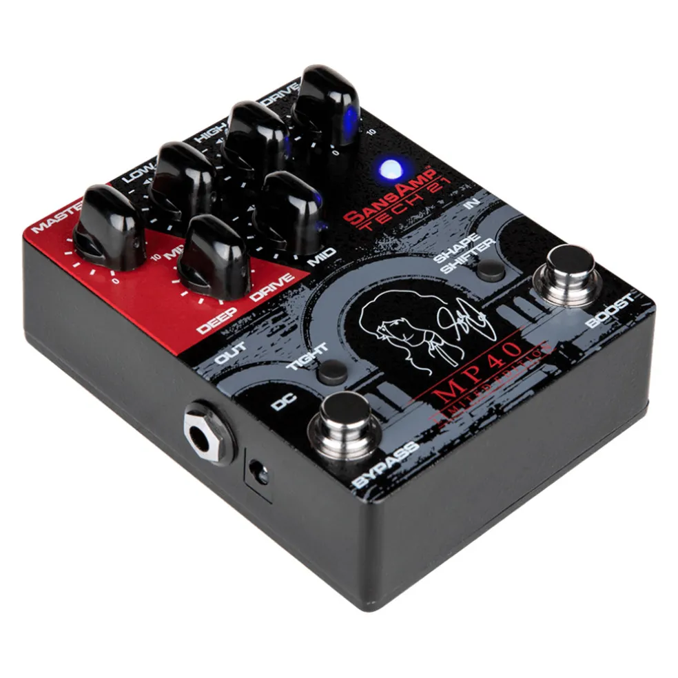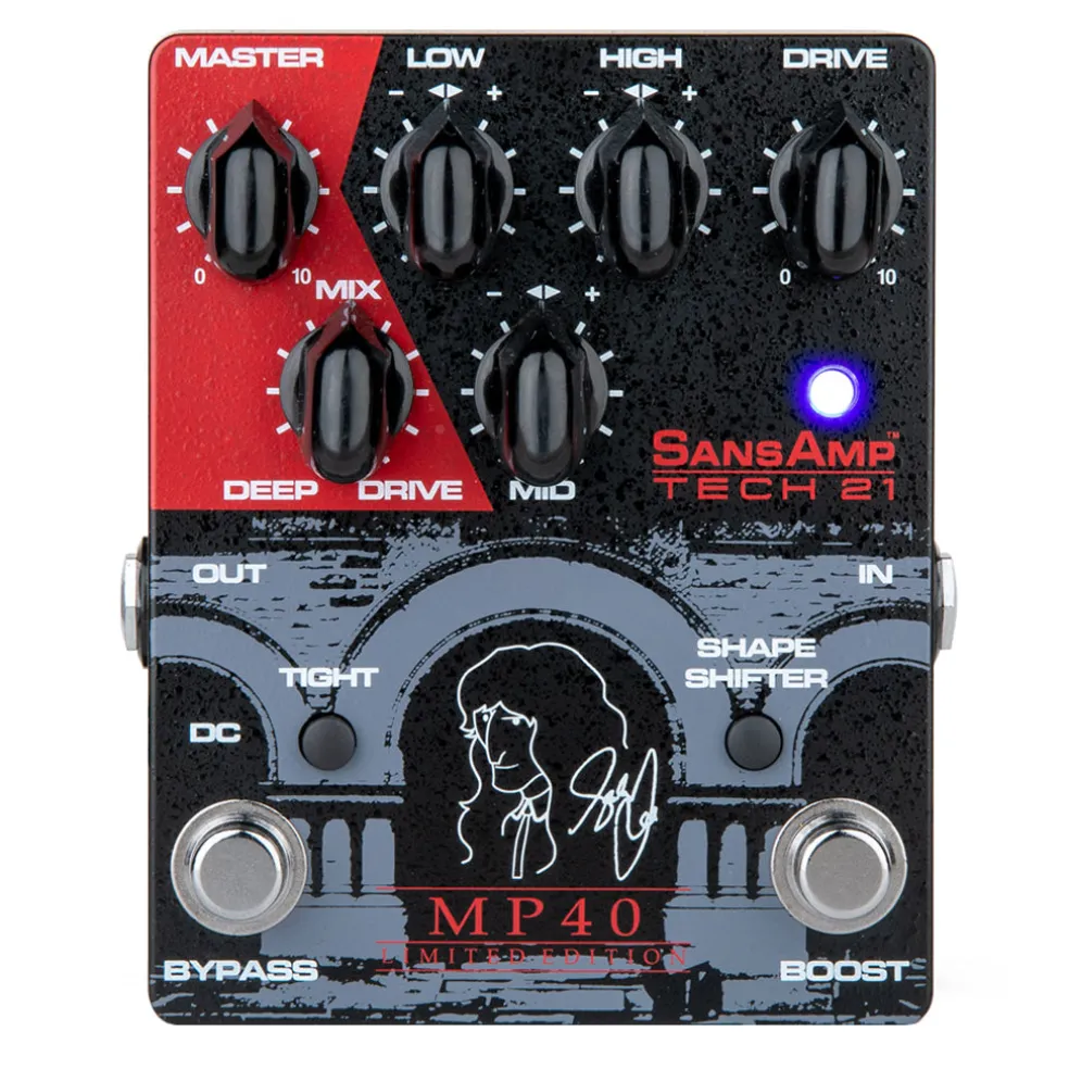 The all-analog MP40 SansAmp builds upon the original YYZ pedal with a brand new selectable Boost stomp switch that provides a 12dB presence boost for increased top-end distortion. Additionally, engaging the Shape-shifter button gives you 6dB of Schmegilka on top, which, according to Geddy, “is an indefinable thing of awesomeness!”