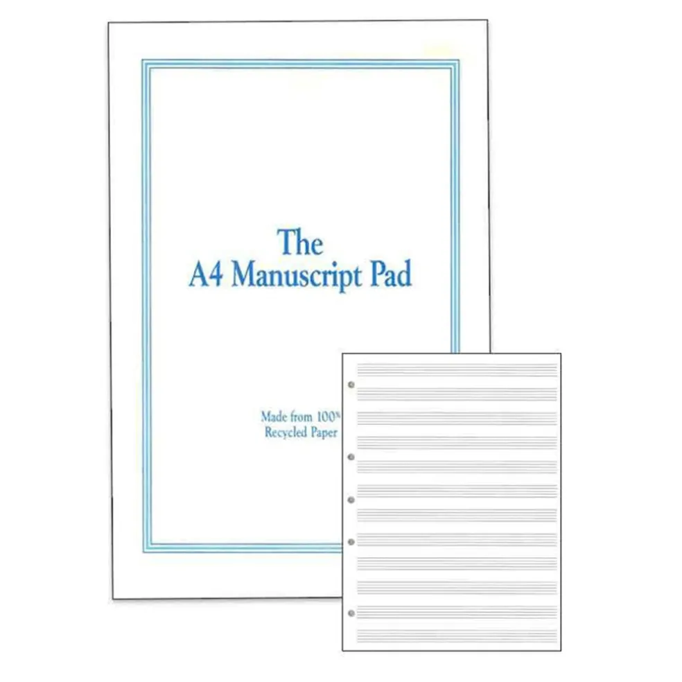 This Best-selling A4 100% Recycled Paper Pad has 50 pull-out sheets with 12 standard staves printed on each side giving you 100 pages of useable manuscript. Conveniently pre-punched with 5 holes to suit all ring binders and a sturdy backboard to provide extra support and an ideal writing surface. Excellent quality and value.