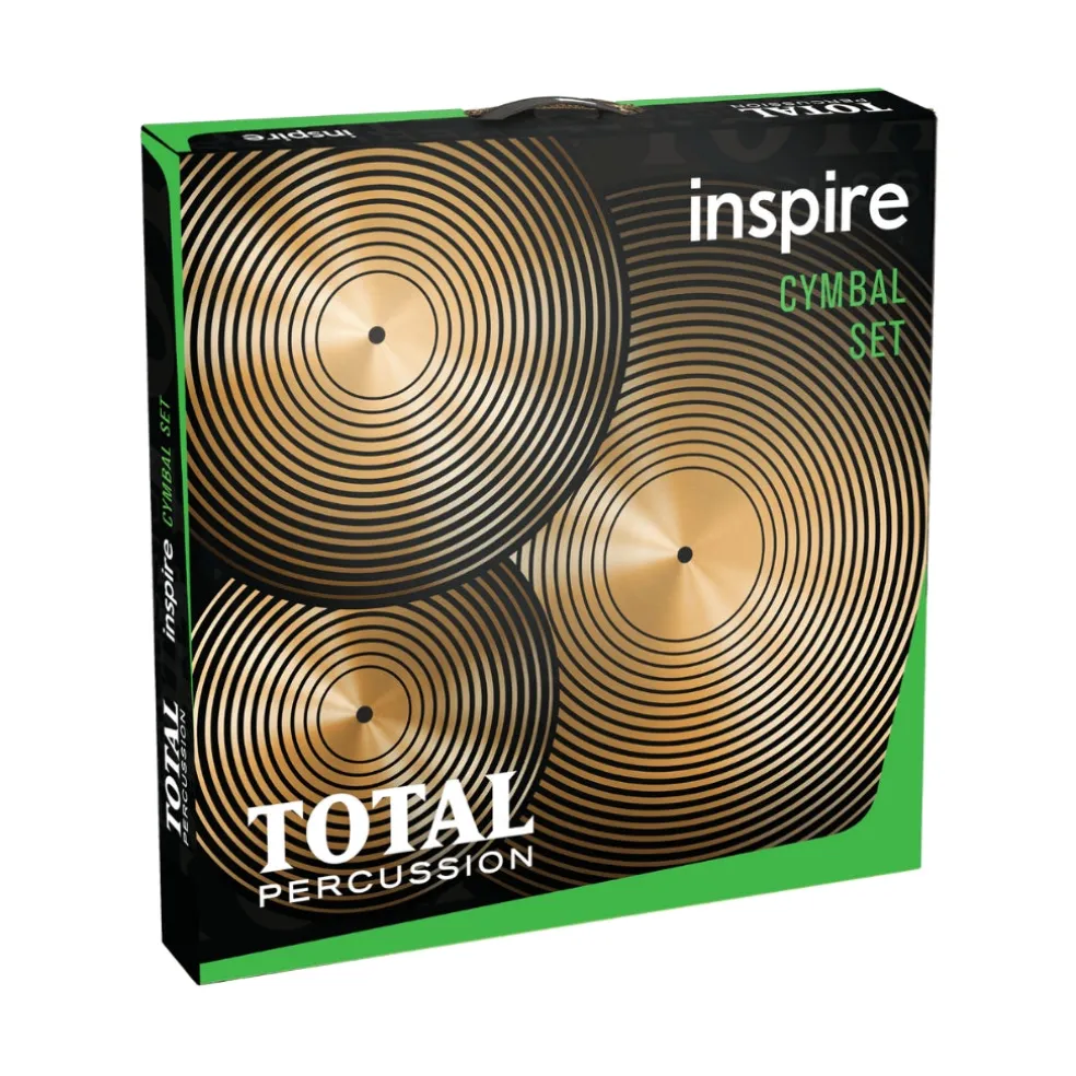 The Total Percussion Inspire box set includes brass cymbals designed to kickstart your drumming journey. Perfect for beginners, these cymbals will accompany you from your first downbeat to lessons and jam sessions with your band. They’re a reliable choice for every aspiring drummer!