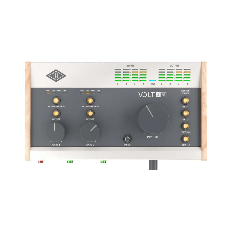 Using UA’s well-known analog experience, the Universal Audio Volt 476 produces a USB-C audio interface deserving of a legacy spanning several decades. With its superior analog circuitry and industry-best 24-bit/192kHz AD/DA conversion, the Volt 476 lets you produce music productions, podcasts, and livestreams with a sound quality that is fit for a professional. This audio interface features two line inputs, two microphone preamplifiers with switchable analog sound in the style of the 610, and easy-to-use input metering. But the real star of this interface is its integrated FET compressor, which is adapted from the 1176 and has three push-button application modes. Beyond that, direct monitoring for zero-latency operation is included, and six analog outputs and a headphones output make monitoring simple. Additionally, MIDI I/O is provided for your controllers and synths. The Volt 476 has an industrial design that is tough and reminiscent of the 1950s, together with an advanced suite of native software.