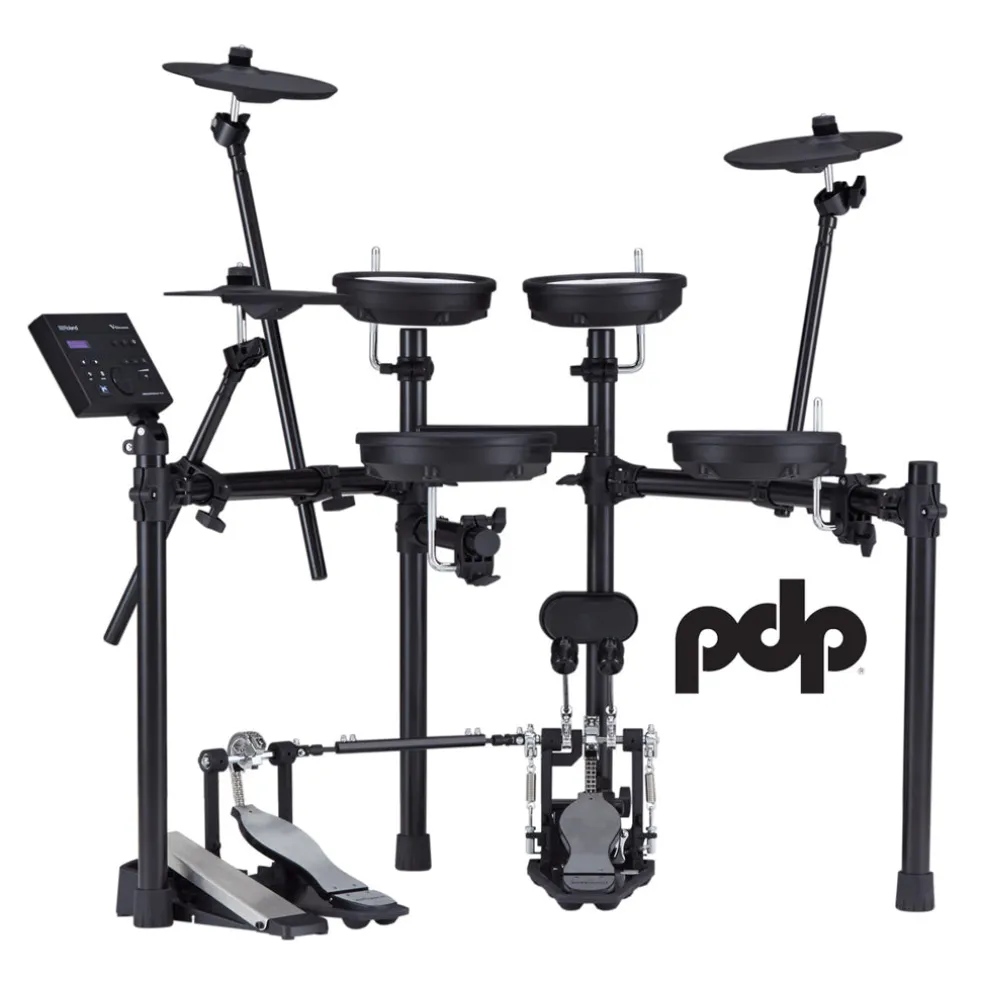 - Snare and tom pads with Roland’s legendary double-ply, tension-adjustable mesh drumheads