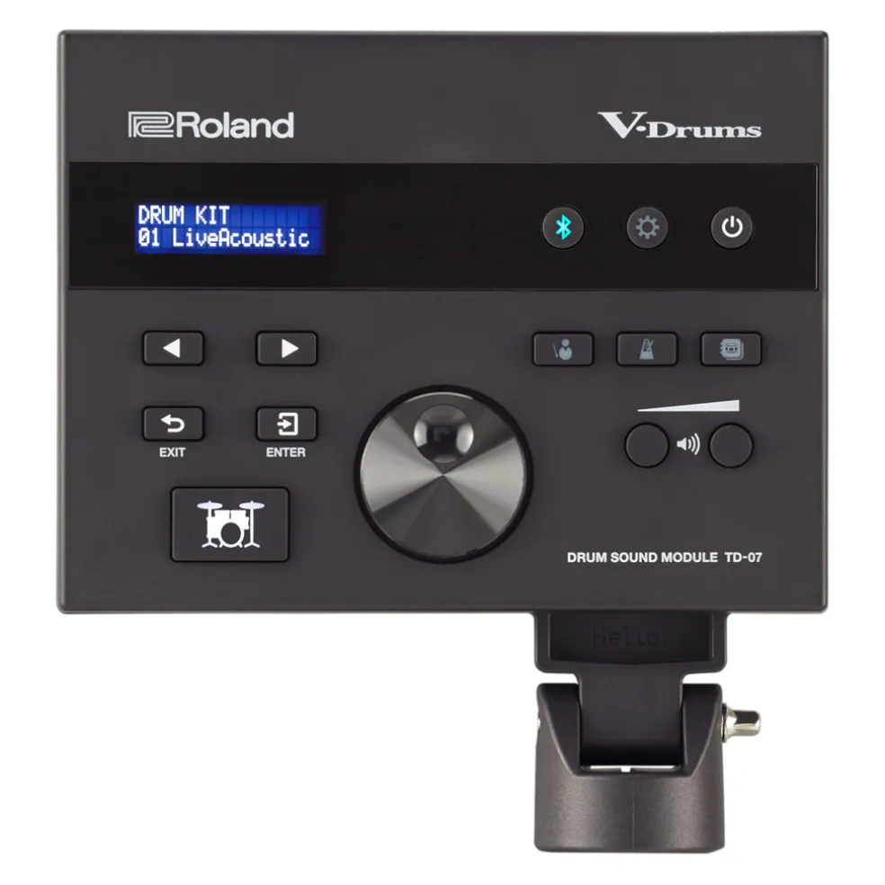 - TD-07 module with 25 preset kits, 25 user kits, and 143 instruments