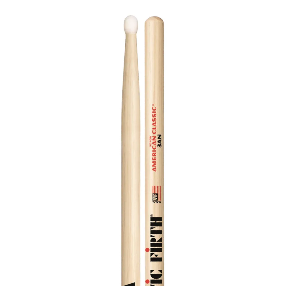 Barrel tip produces bright, articulate cymbal sounds. Great for light rock and fusion. The American Classic® line combines tradition and Vic Firth style. With bold designs, the Classics are turned from select hickory — a dense wood with little flex for a more pronounced sound. Hickory is also capable of withstanding a great deal of shock, making it highly durable. The tips are deeply back-cut for intensified cymbal response.