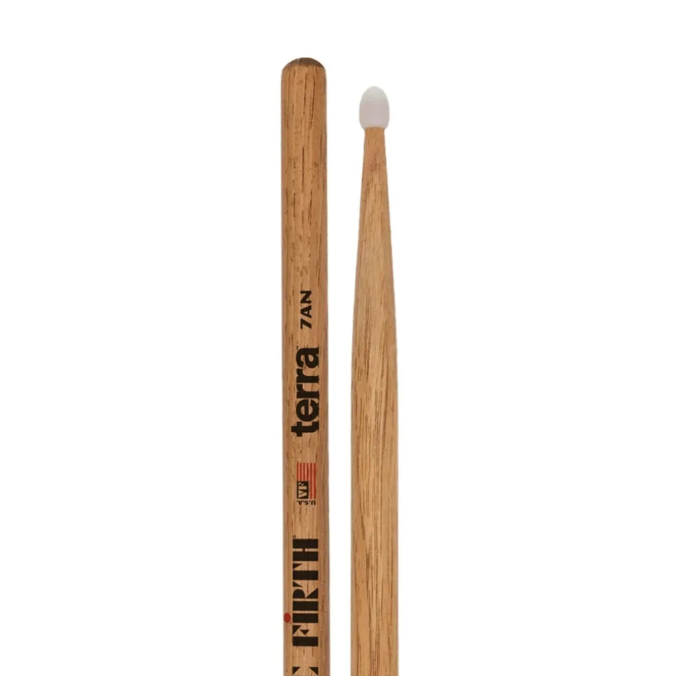 The Vic Firth Terra™ Series drumsticks celebrate the natural beauty our earth gifts us in each drumstick we make. Using a proprietary staining process, the unique and beautiful grains are exposed so that no two pairs are alike. Crafted from premium USA Hickory in Newport, ME, the Terra™ series pays homage to the material that drummers around the world rely on to make magic behind their kit.