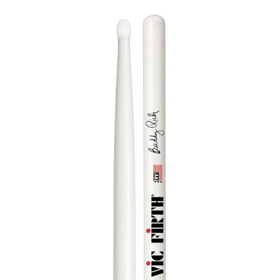 A modified 5A with a larger tip, neck and shoulder. Quite possibly the most recognized jazz drummer of all time, Buddy Rich fundamentally changed the role of the drummer. His inimitable style pushed him to center stage, and in so doing, created generations of aspiring young drummers! Artist collaborations have long been a point of pride for Vic Firth Company. Conceived with the utmost respect for artistry and musicality, sticks in the Vic Firth Signature Series celebrate the musicians –past and present –who shape the drumming world today.