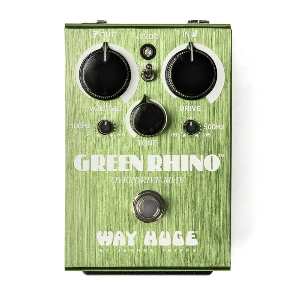 The Green Rhinoâ„¢ Overdrive Mark IV is smaller and more compact than its ancestors, but it has more force than ever behind its mighty charge. In addition to the Volume, Tone, and Drive controls of the original, this beastie has the MkII’s 100Hz control and an all new 500Hz control so you can to cut or boost your lows and mids by 12dB each way. Make your notes shake the ground like a stampede across the savannah or cut through the mix like a rushing rhino’s horn. Want to take this pedal back to its ancestral roots? Just throw the Classic switch to get the simple Volume, Tone, Drive setup and sound of the original Green Rhino Overdrive. The MkIV is as versatile as it is rambunctious, and it’ll come to heel if need be. It can take a clean amp from pristine purity to a punchy, dynamic rhythm tone, but put it in front of a distorted channel, and you’ll hear more gain and sustain than you ever thought your amp was capable of.