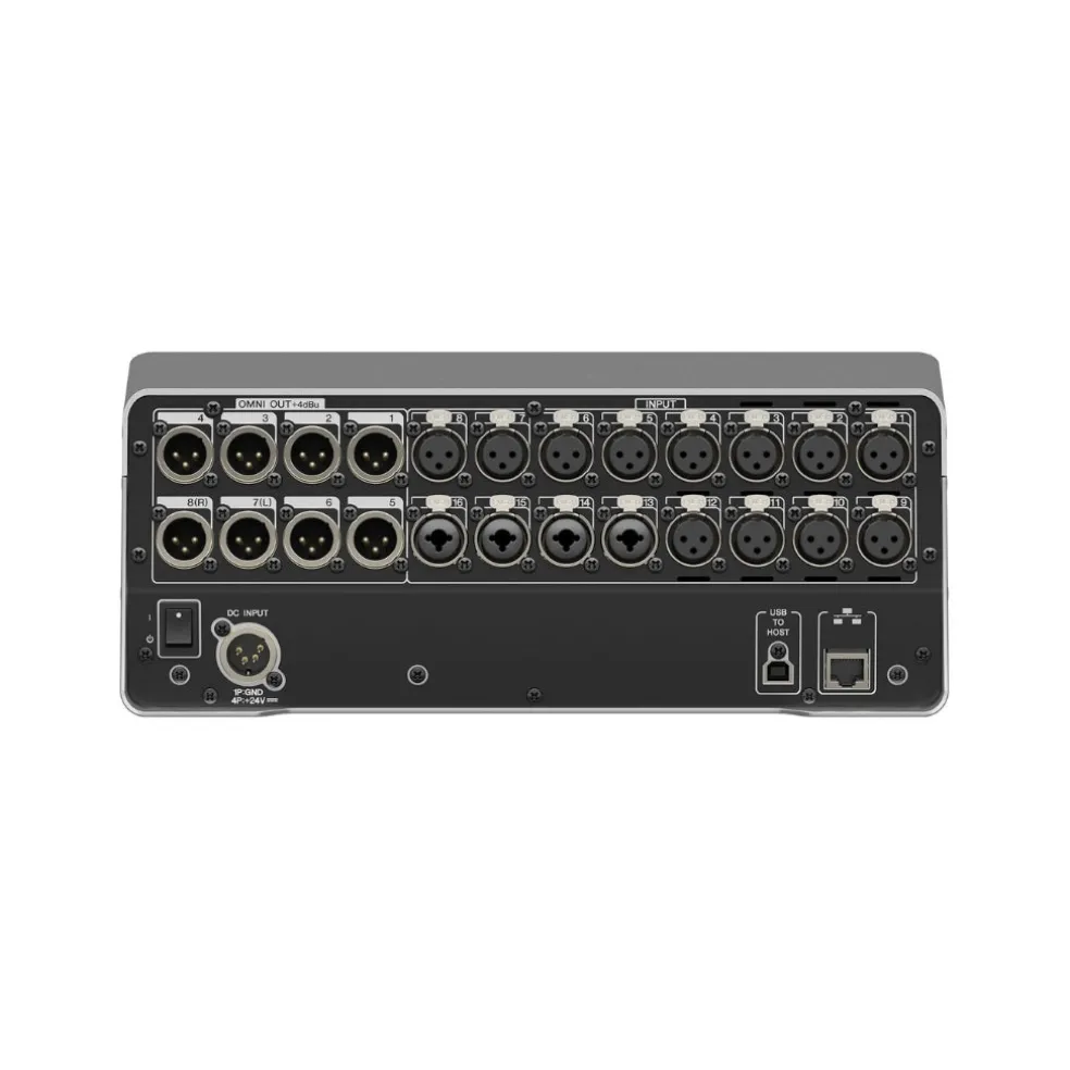 - Local I/O: 16 Mic/Line (12 XLR + 4 XLR/TRS Phones Combo) inputs, and 8 (XLR) outputs