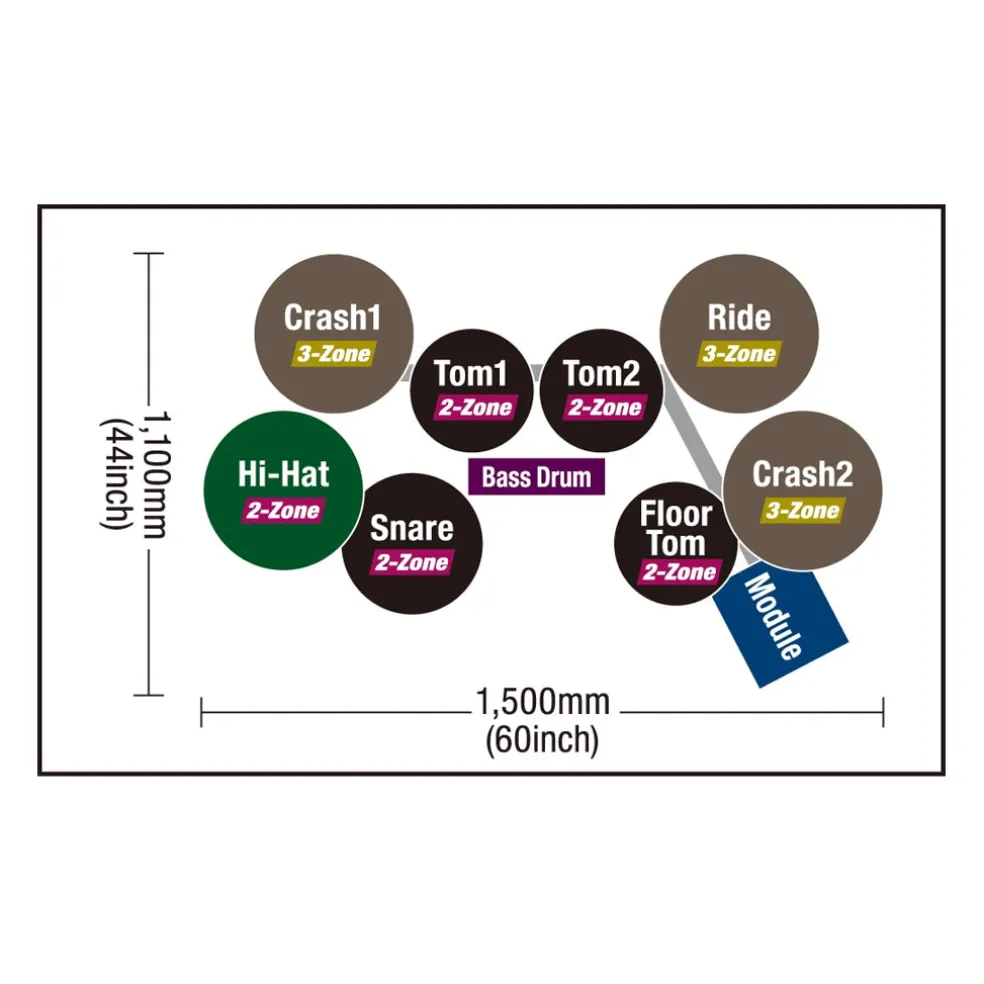 - Included cymbals: 1 RHH135 13-inch hi-hat controller, 2 PCY135 13-inch crashes, and 1 PCY155 15-inch crash/ride