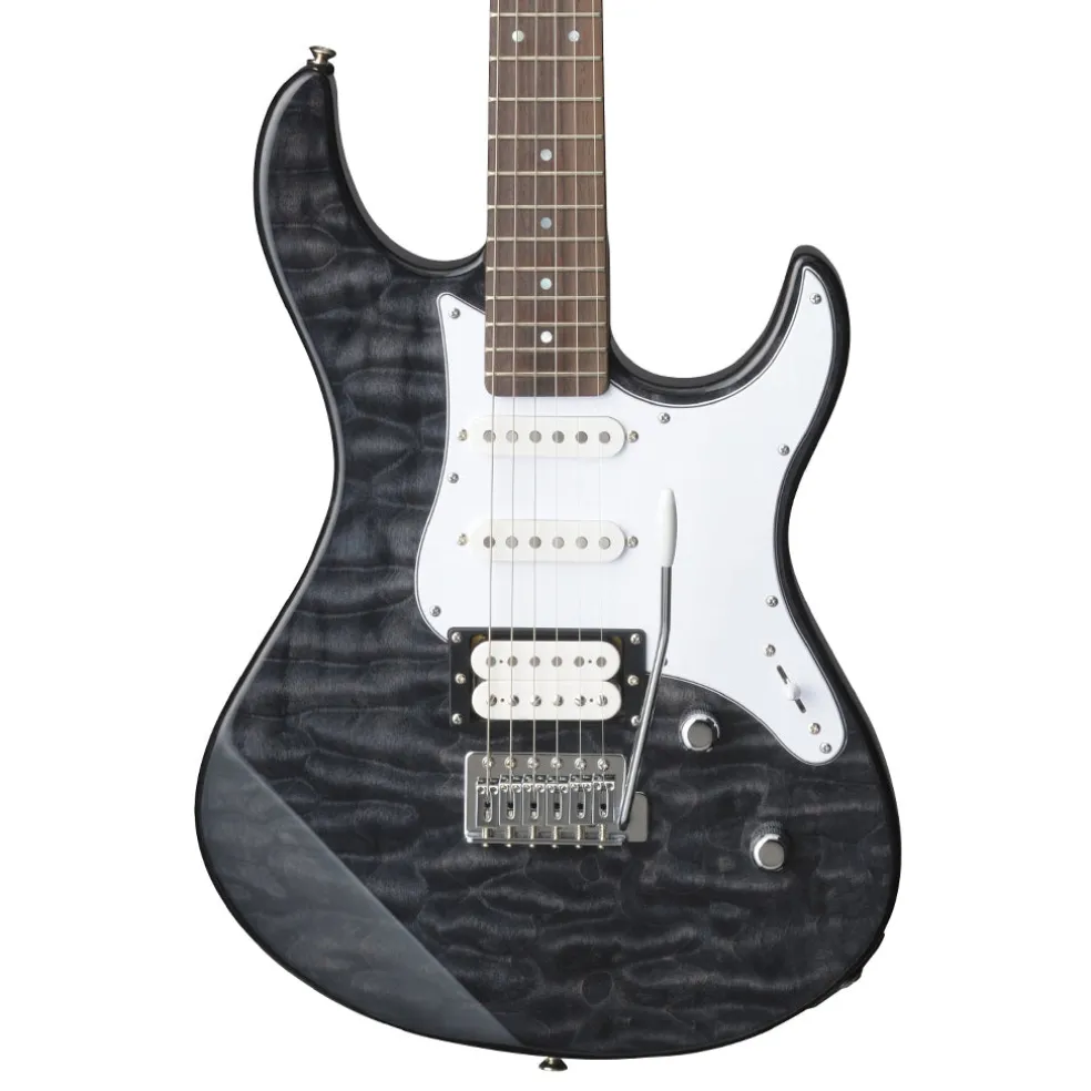Building on the popular Pacifica 112V, the Yamaha Pacifica 212 guitars add the striking aesthetics of flamed maple or quilted maple tops with translucent finishes and matching headstocks. With a humbucker and two single-coil pickups, push-pull coil split and vintage-style vibrato, the Pacifica 212 offers versatile tones and eye-catching style.