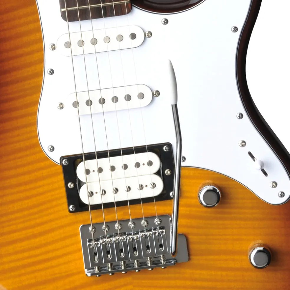 Building on the popular Pacifica 112V, Pacifica 212 guitars add the striking aesthetics of flamed maple or quilted maple tops with translucent finishes and matching headstocks. With a humbucker and two single-coil pickups, push-pull coil split and vintage-style vibrato, the Pacifica 212 offers versatile tones and eye-catching style.