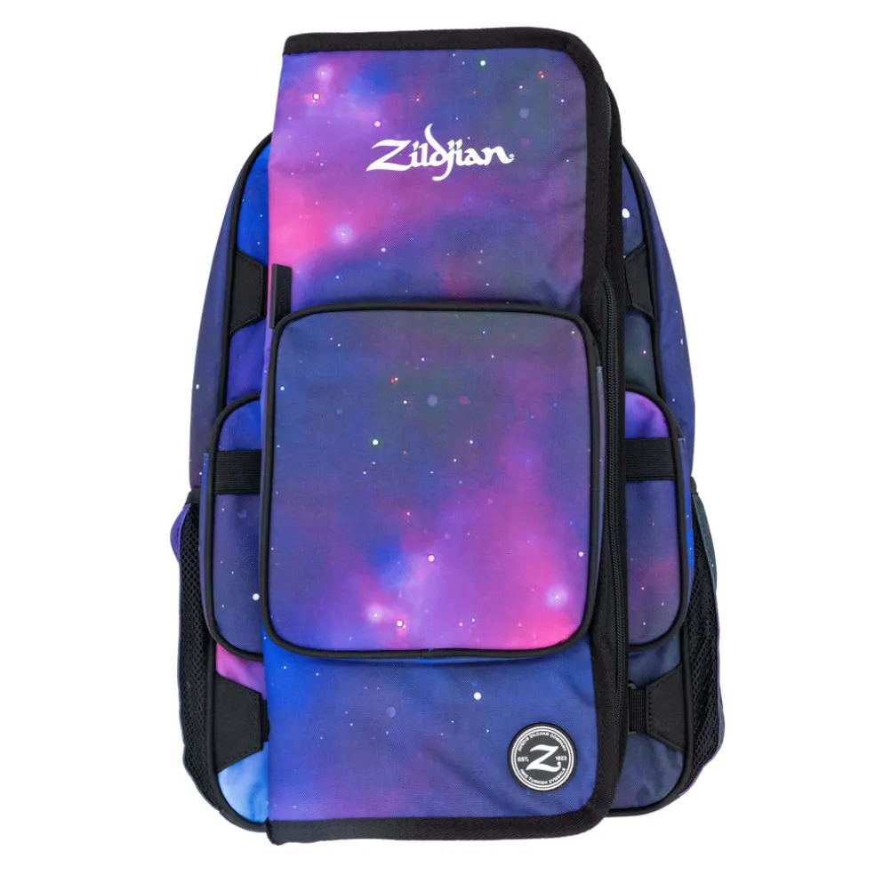 The drumstick bag clasps easily to the front of the backpack, making it seamlessly integrated for easy access and style. Each bag functions individually or conveniently together. The spacious main backpack compartment accommodates textbooks, notebooks, and a laptop, while the full-sized stick bag holds up to 12 pair of drumsticks, mallets, or other implements.
