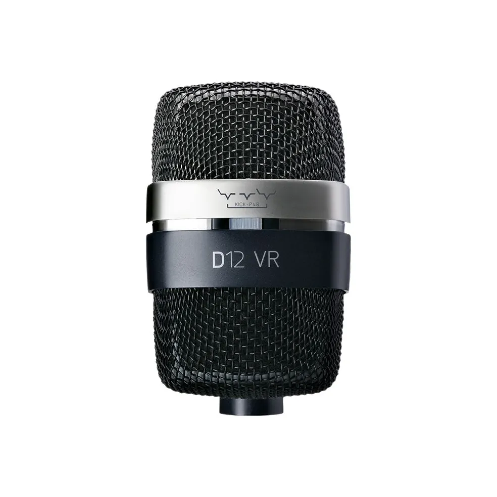 The D12 VR is a reference large-diaphragm dynamic microphone with cardioid polar pattern. Designed specifically for kick-drum recording applications, the microphone has a thin diaphragm to enhance the low frequency performance. Its warm sound is realized by the original C414 transformer, especially impressive at high signal levels. The D12 VR features three active filter presets to match its sound shape with the kick drum’s character. When activated, the output level is automatically reduced by 10 dB. The filter settings can be controlled using a switch on the microphone body. Without phantom power, the microphone operates in passive mode and delivers the instruments pure sound.