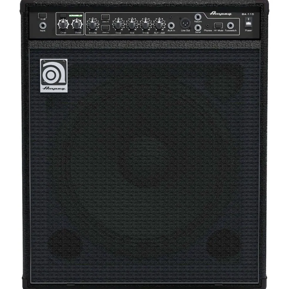 Ampeg’s BA-115 15″ Bass Combo delivers classic Ampeg tone in a 150W design with performance-driven features perfect for the stage. The ruggedly portable design provides a true 60-degree sound reinforcement monitor angle that adds clarity in any situation. The BA-115 features Bass Scrambler™ overdrive plus flexible tone-shaping and professional performance features in a portable, powerful 15″ combo.