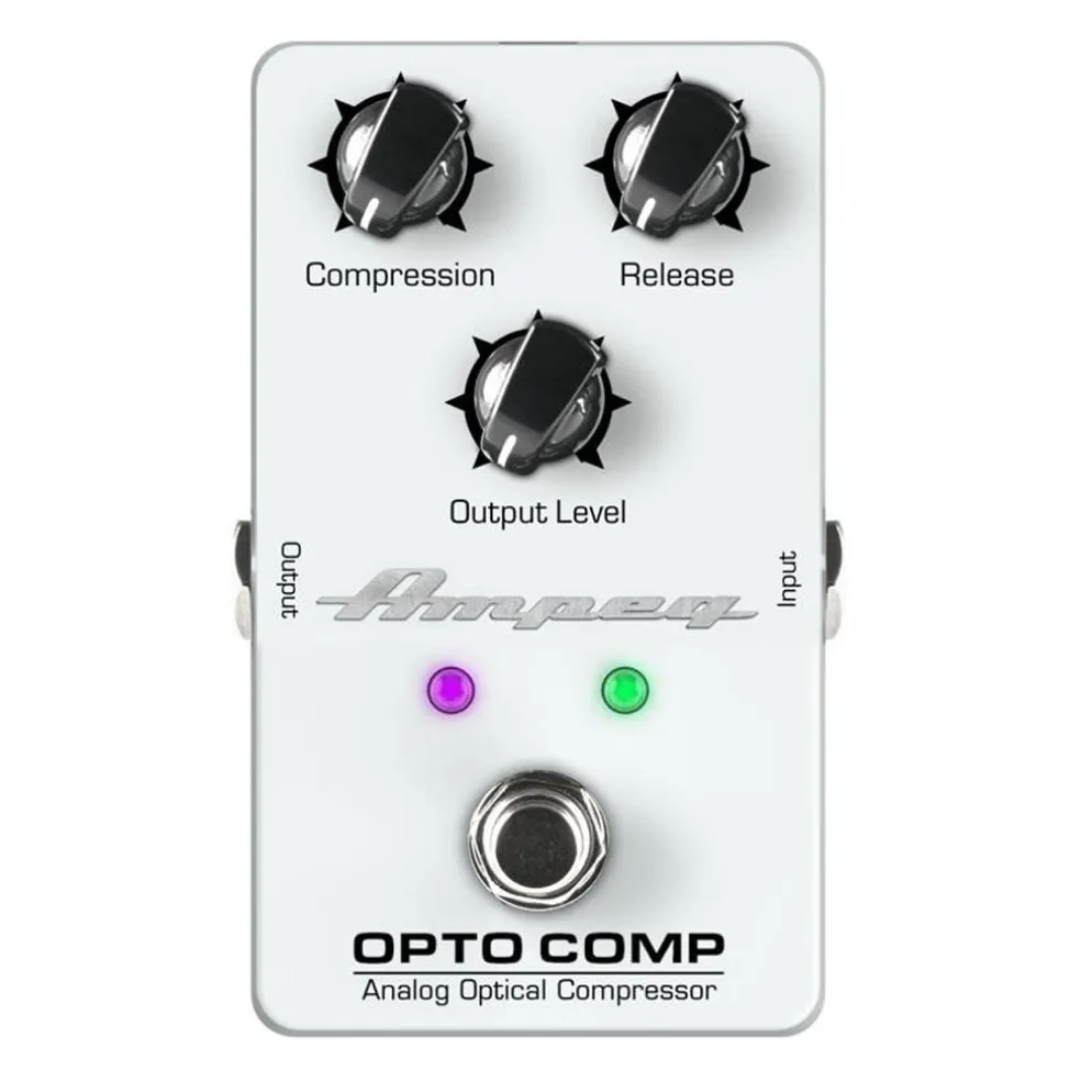 The Ampeg Opto Comp Analog Optical Compressor pedal utilizes an optical circuit to deliver smooth, vintage style compression to add headroom and sustain to your guitar or bass. Dial in a fast, subtle style to control peaks or crank up the compression to add a unique character. Bring your tone to new heights with the Opto Comp Analog Optical Compressor.