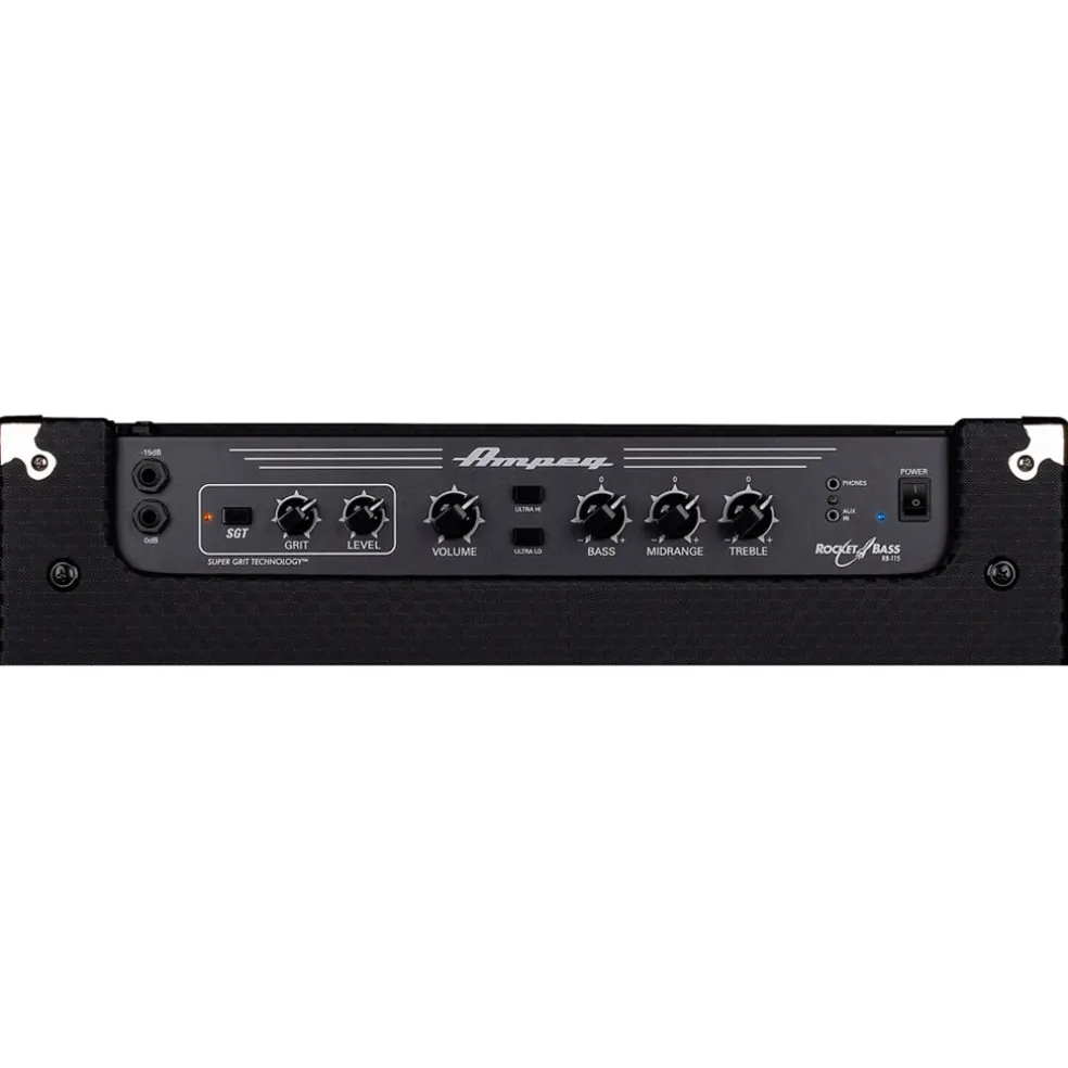 The 200-watt RB-115 is an exceptional gigging and recording amplifier with a custom 15 Eminence® speaker. Classic Ampeg 3-band EQ and Ultra Hi/Ultra Lo switches combine with the new Super Grit Technology™ overdrive circuit to deliver legendary Ampeg tone. Additional features include an auxiliary input, a headphone output, an effects loop, an extension speaker output, and an XLR output that provides a professional connection to a P.A. or recorder.