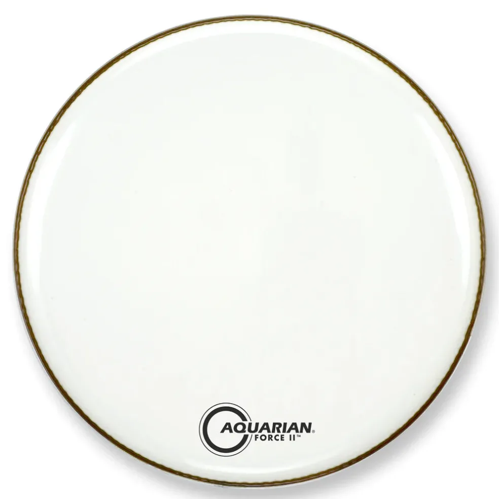 The Full Force™II (FRWH) WHITE, single ply, medium weight Resonant bass drumhead features a “vented” acoustic muffling ring tucked into the hoop on the underneath side of the head. The muffling ring helps control overtones and features vent holes along its perimeter that allow the ring and head to move as one.