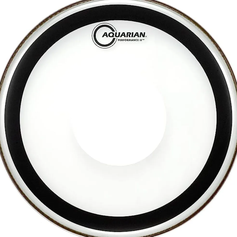 The Aquarian PFPD18 Drumheads Performance-2 with Power Dot Tom Tom Drum Head is a two-ply head manufactured with Aquarian’s Vacuum Molded Process which eliminates air bubbles and wrinkles between the two plies. This head is sealed at the edges to control any over the ring and focus on low frequencies. This is designed for loose tuning to deliver that low, fat, punchy tom tom sound. Remember that big, fat, low tom tom sound you heard on the classic rock and roll records. The sound that you could never get on your own. Now you can get that low-controlled sound. The small Power Dot adds durability. Diameter 18 inches.
