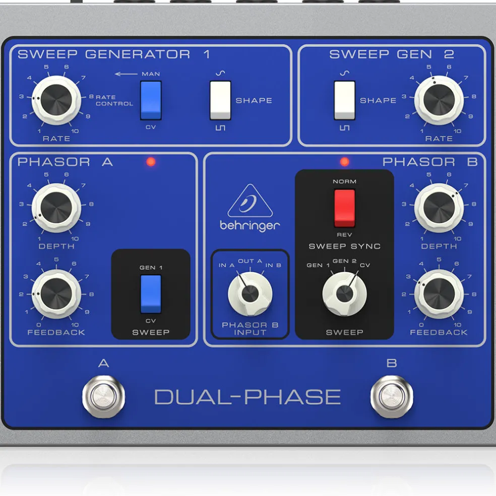 What sets the DUAL-PHASE apart from the original is its integrated dual footswitches that you can use to engage or disengage either Phasor A or B – at just the push of a button. Are your hands too busy playing? You can connect an expression pedal or any control voltage source to manipulate the sweep speed of any of the two phasors on the fly as you’re deep into your killer solo.