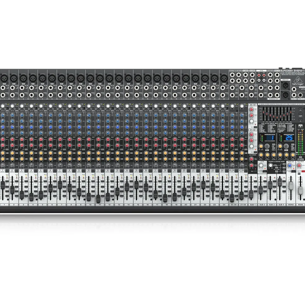 The 32-Input, 4-Bus EURODESK SX3242FX allows you to effortlessly achieve premium-quality sound, thanks to 24 of our studio-grade XENYX Mic Preamps, 2 full stereo channels with 4-band EQ, plus 2 additional sets of stereo inputs channels with Level and Aux controls.