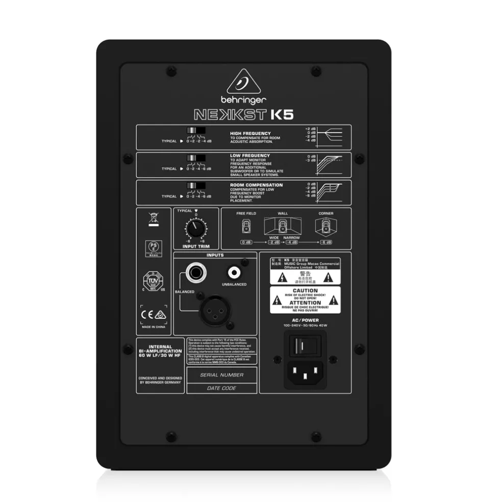 The 150-Watt NEKKST K5 Studio Monitor’s unparalleled, world-class performance is the result of a major collaboration between Behringer audio engineers and loudspeaker master-designer/founder of KRK – Keith R. Klawitter. This incredible reference system is ideal for all critical listening environments thanks to the custom-engineered bi-amplification system that features separate amplifiers for the 5 glass-fiber woofer and 1 silk-dome tweeter. K5’s long-throw woofer generates deep, tight bass and virtually smear-proof mids, while the ultra-high resolution tweeter provides sparkling highs – all enhanced by Keith’s Advanced Waveguide Technology for an extremely generous sweet spot.