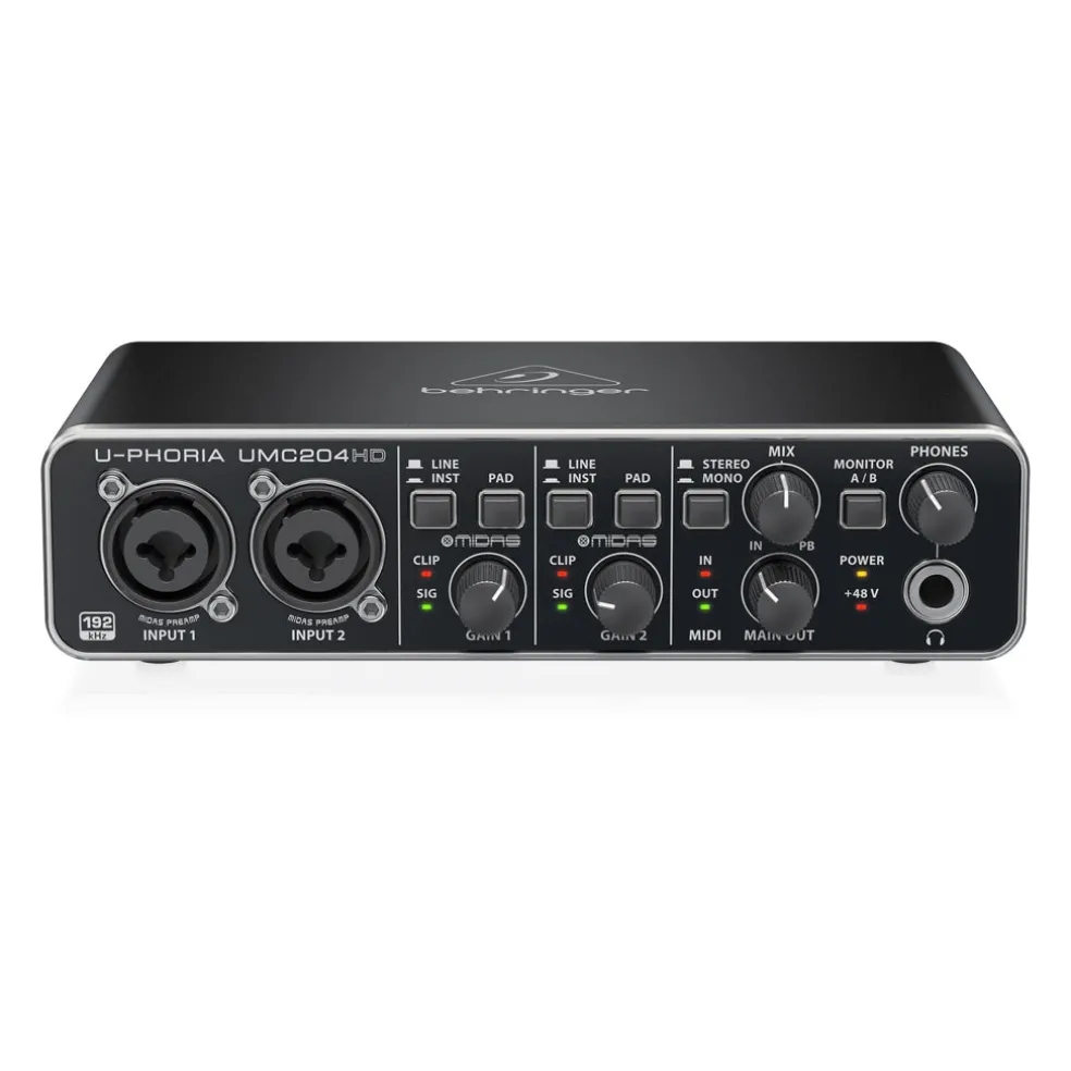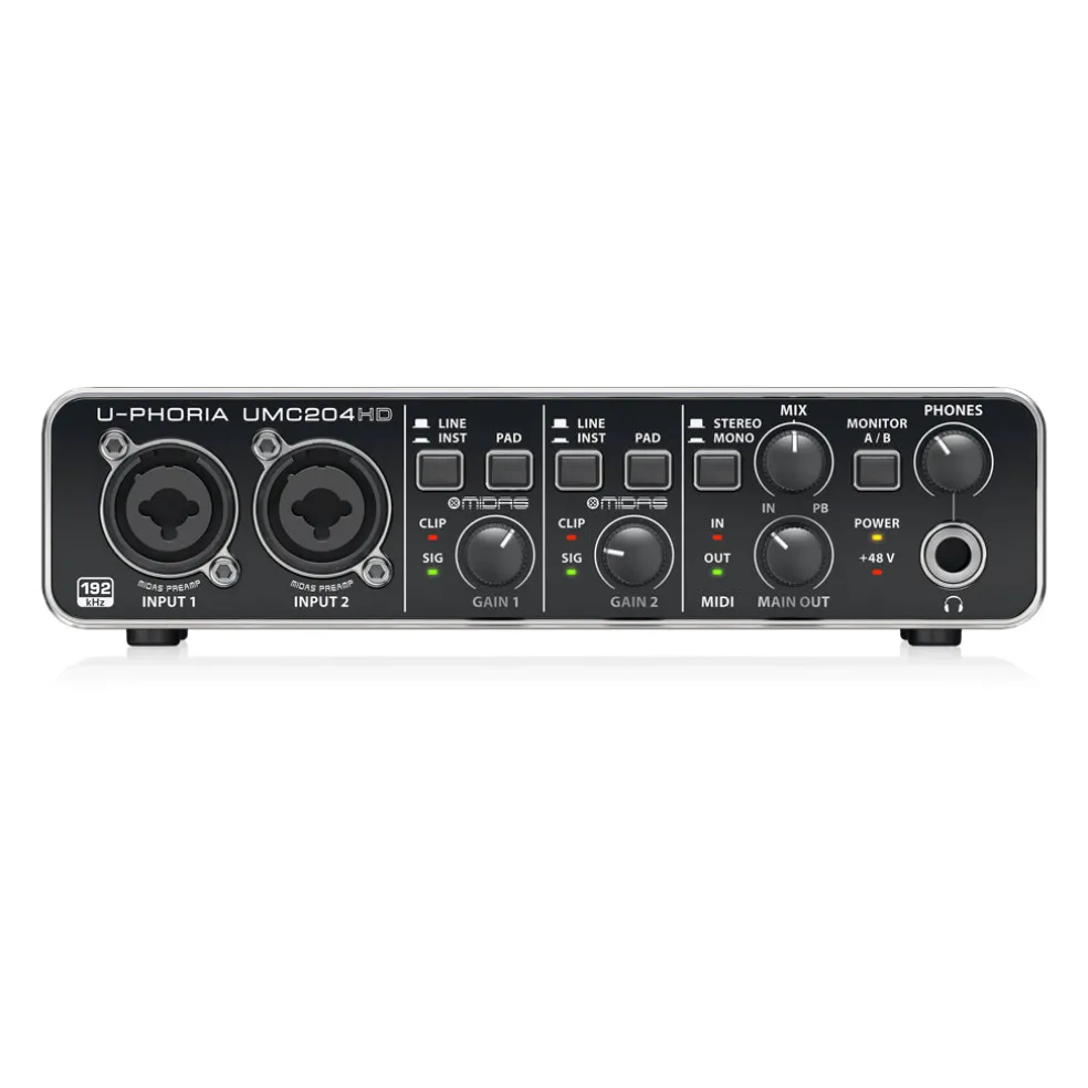 The incredible U-PHORIA UMC204HD bridges the gap between your creativity and your fans. This blazingly fast USB 2.0 studio in a box will have you recording your next masterpiece in minutes with all the connectivity required for your microphones, guitars, keyboards and even MIDI devices.