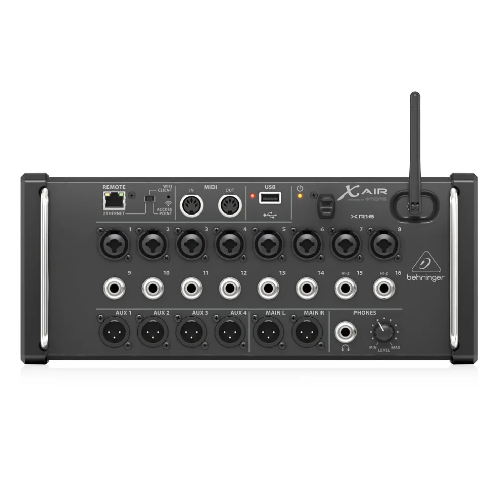 The revolutionary XR16 is a powerhouse 16 input portable/rack-mountable mixer for iPad and Android tablets, and is ideally suited for both live and studio applications, thanks to its 8 award-winning MIDAS-designed mic preamps, convenient integrated Wifi module for wireless control, plus USB connectivity for file storage, system updates and uncompressed stereo recordings via the USB Stereo Recorder. We’ve also included the rack ears and protective bumpers for added flexibility in your studio and stage applications.